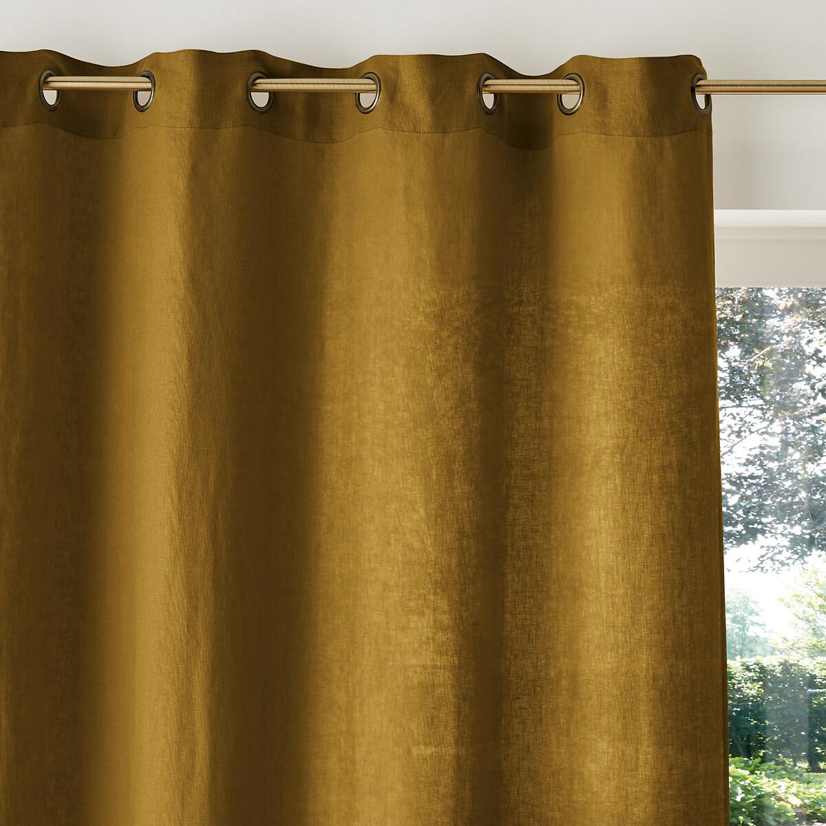 Made from heavy linen with obvious elegance, the Elba eyelet curtain dresses your windows, adding a sophisticated look to your interior. Appreciated for its authenticity, linen becomes more beautiful and softer with every wash. Product Details • 100% linen (280g/m2) • Bronze colour eyelets • Inner diameter of eyelets: 4cm • Stitched hem. The eyelets guarantee nice regular waves and ensure the fabric falls beautifully. They slide perfectly on the rod, making it easy to open and close the curtain. Care Advice • Machine washable • Fabrics made from natural fibres may shrink in the first wash. Always wash your curtains before making any alterations. Sizes • Drop 250 x Width 140cm • Drop 300 x Width 140cm • Drop 350 x Width 140cm • OEKO-TEX® Standard 100. Standard 100 certification by OEKO-TEX® tests textile products for harmful substances via an independent, international label.