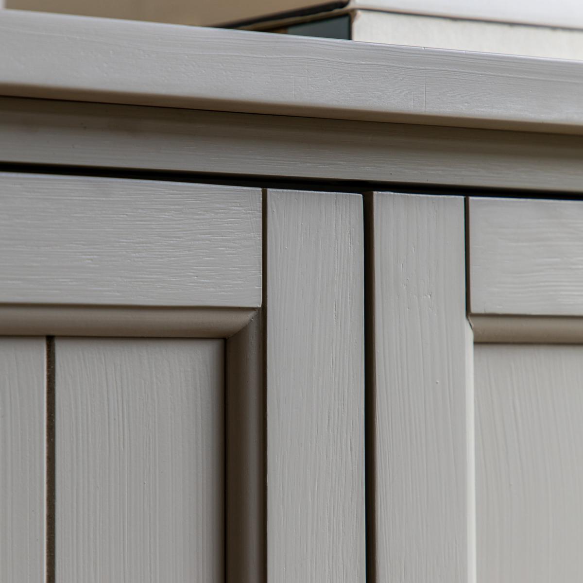 I love this pink display cabinet for its charming and versatile look. The soft oyster hue makes it a wonderful statement piece that can add a touch of colour without overpowering a space. It works particularly well in feminine or shabby chic interiors, but also pairs nicely with modern or Scandinavian styles when styled thoughtfully. For practical styling tips, consider using the top to display decorative items like vases, books, or ceramics, while the internal shelves can be utilised to organise smaller items with baskets or labelled containers. Placing it against a contrasting wall, such as a crisp white or muted grey, helps it stand out, while keeping accessories minimal keeps the look fresh and uncluttered.