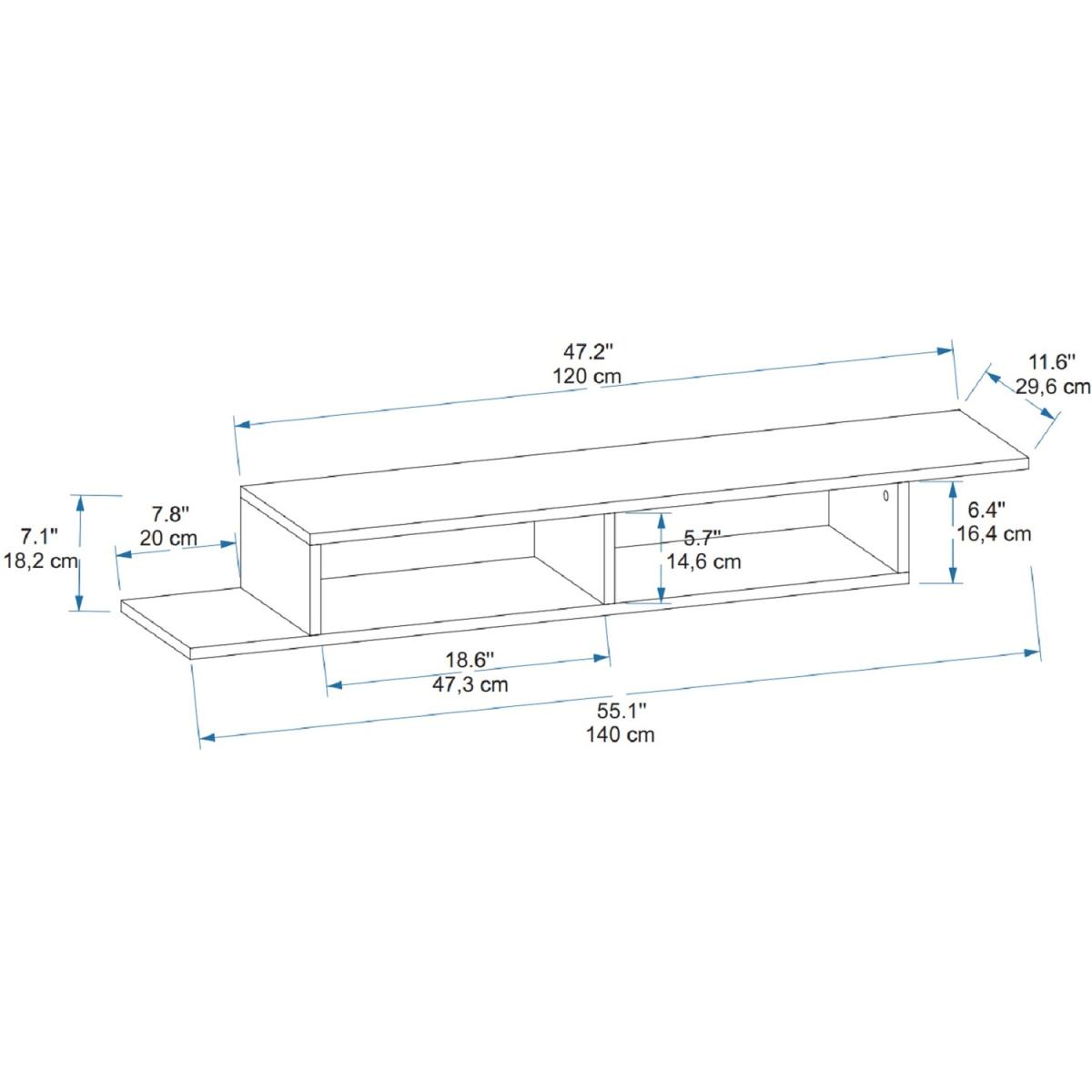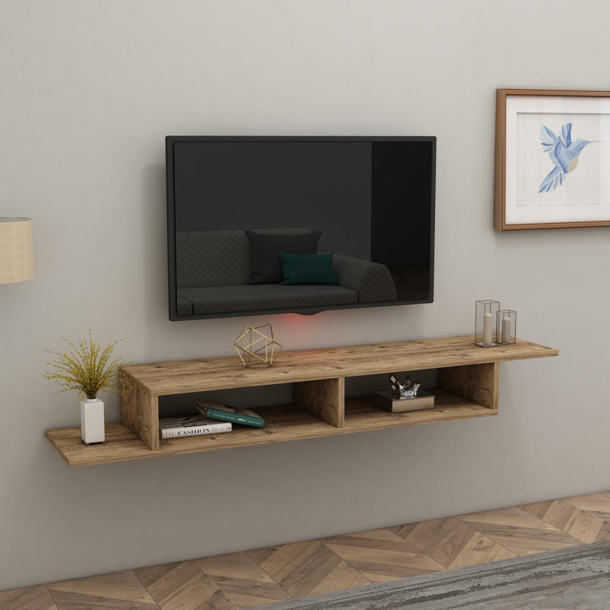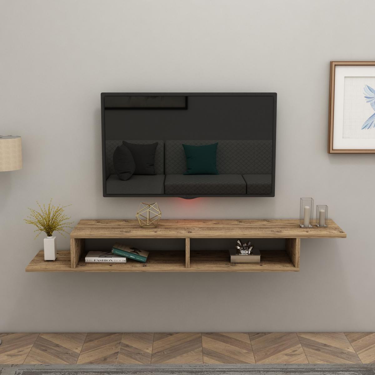 Note that the TV stand is not designed to hold a TV, instead both the stand and the TV must be mounted to the wall separately. MATERIAL The TV stand is made of an 18 mm thick quality melamine-coated particleboard. The manufactured wood surface is water-resistant to some extent and the edges are banded with PVC edge banding tape. First-class assemblyinstallation hardware and accessories are used. Our products are produced from certified quality raw materials that do not contain carcinogenic substances and comply with European Union health norms. CLEANING You can clean your furniture with a dry cloth. Avoid prolonged contact of your product with moisture and water. ASSEMBLY The product will be delivered to the customer in the original package as disassembled. It is designed to be assembled by the customer using a power drill and screwdriver. Assembly instruction and installation hardware are included in the package. For fast and error-free installation, product parts are numbered with stickers in accordance with the assembly guide.