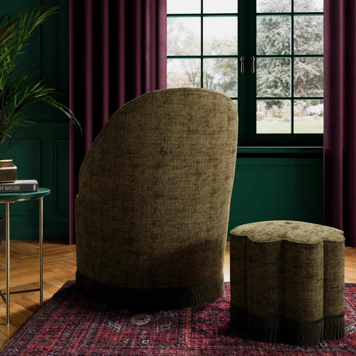 I’m a fan of the tassel chair for its relaxed, lived-in chenille and statement fringe - it instantly softens a room without feeling fussy. Its curved back and compact scale make it ideal for snug reading nooks, dressing areas or as an accent in a larger lounge. It suits interiors that lean vintage-inspired, bohemian or moody contemporary: think jewel-toned walls, layered rugs and aged brass or dark-stained wood. For styling, tuck a slim side table beside it, drape a neutral linen throw over one arm, and balance its texture with a sleek floor lamp or sculptural plant stand.