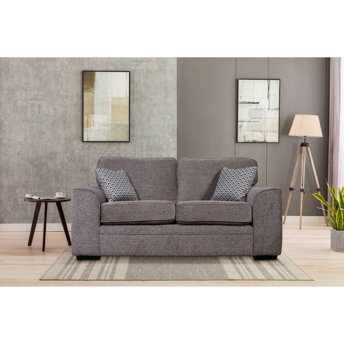 The Eleana fixed sofa is a classic design you can trust. It is available in two soft fabrics and comes with additional scatter cushions which add to the cosy comfort and relaxion of this set. This range is available as a 3 seater, 2 seater and chair, along with a matching ottoman, offering the perfect fit for any living room. Available in Platinum or Almond fabric complimented by a black square foot.