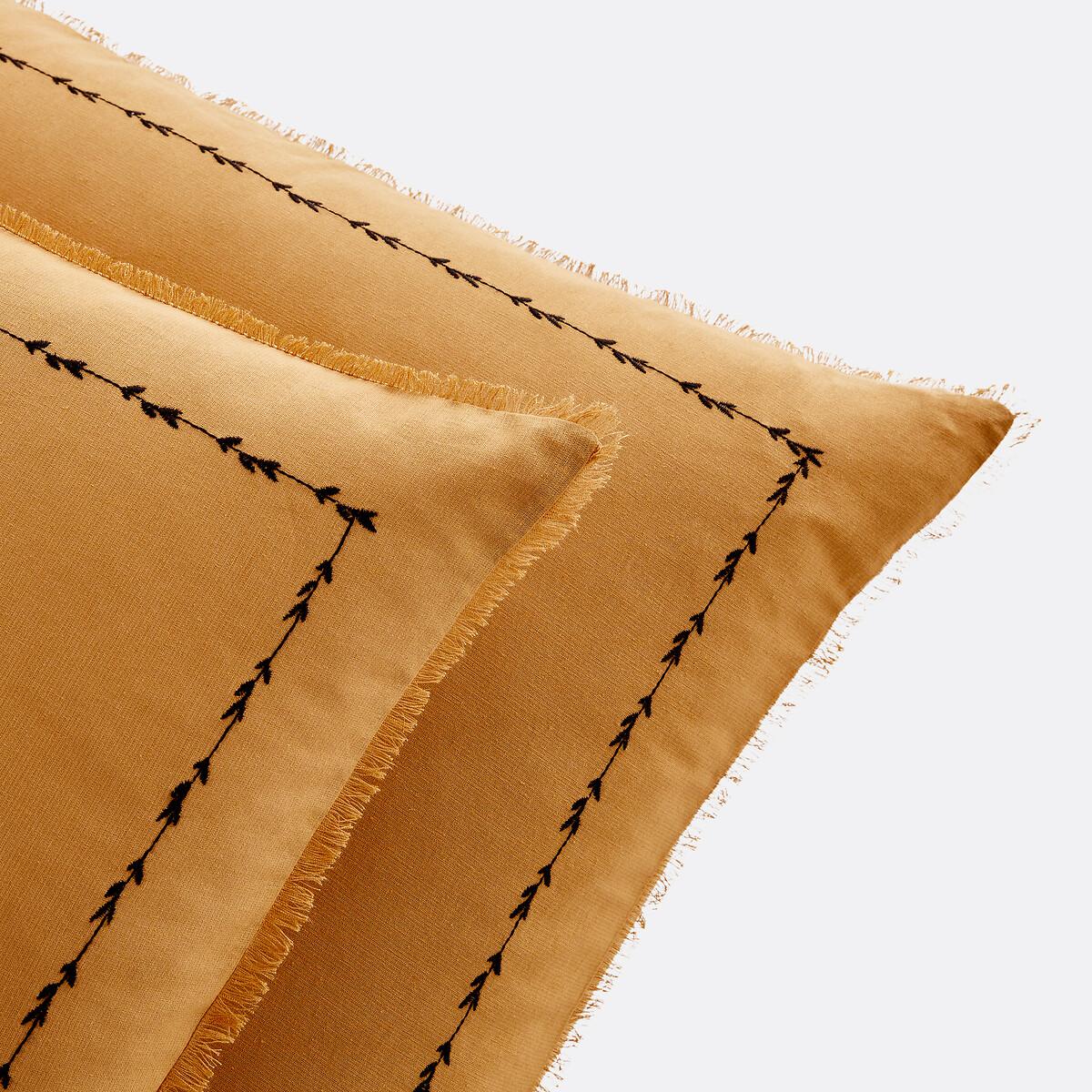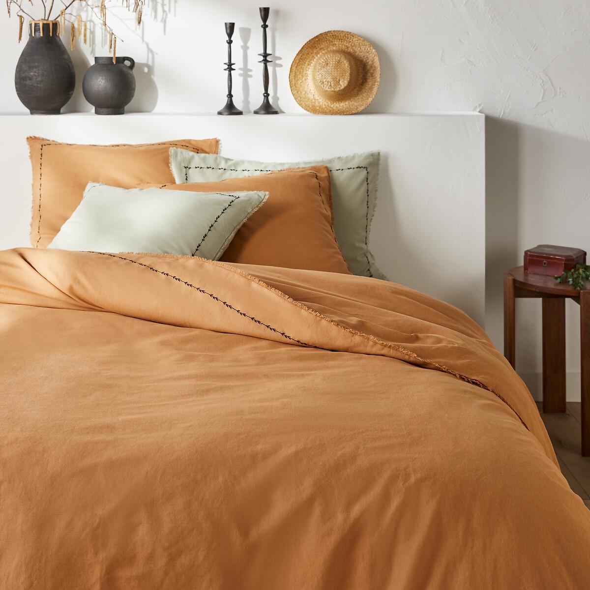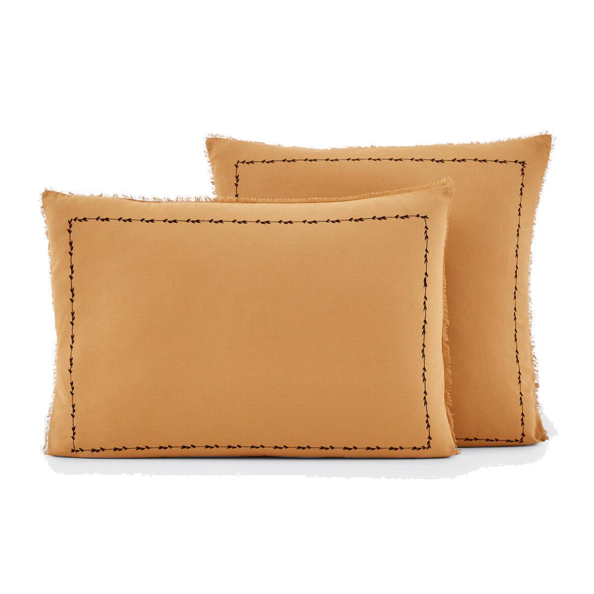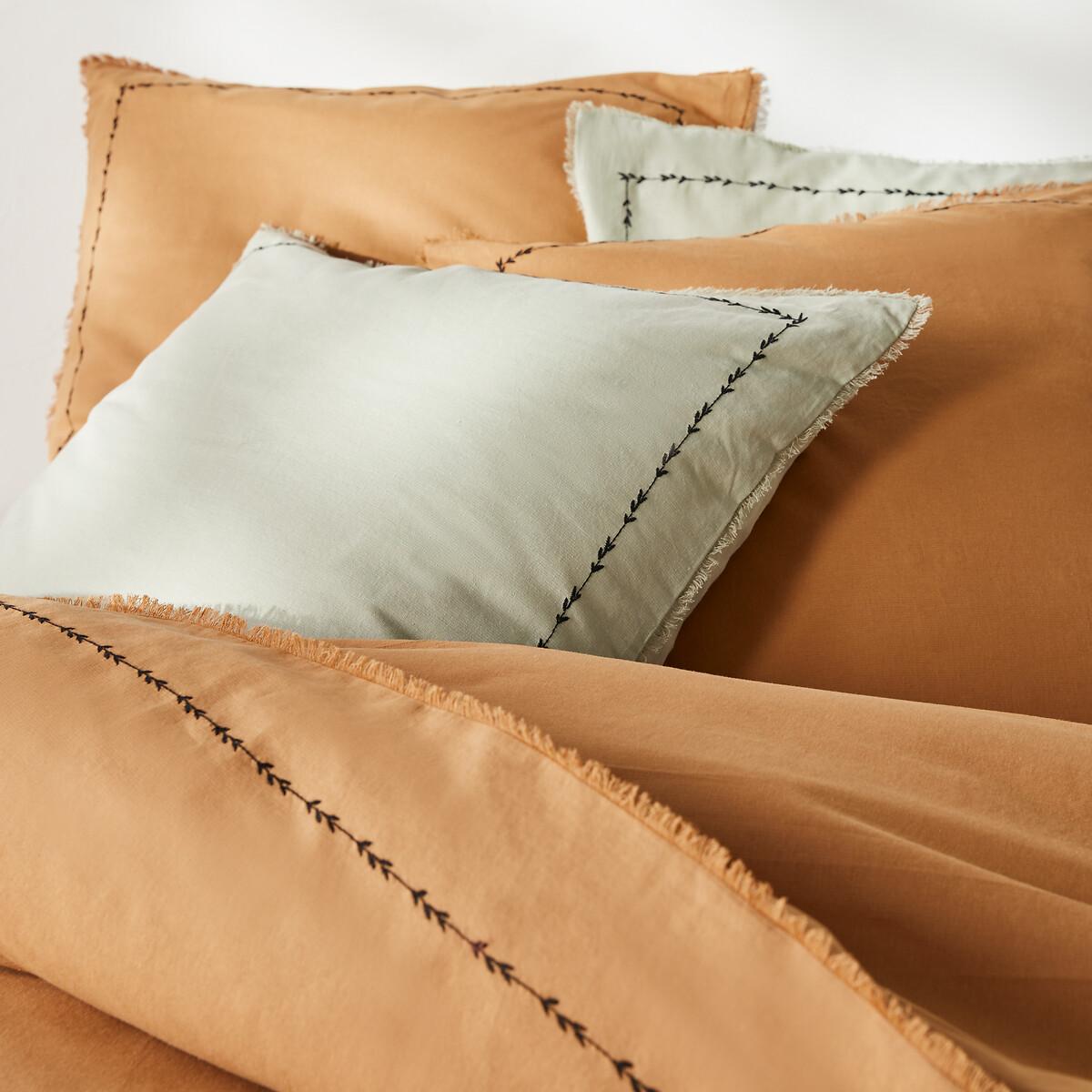 A fringed finish lined with an embroidered garland: here is Eleanor, the soft and warm cotton/linen pillowcase.! Designed by La Redoute Interiors. Cotton & linen fabric combines the softness of cotton and the raw appearance of linen. Its crumpled appearance does not require ironing. Product Details • 80% cotton, 20% linen • Embroidered and fringed finish around the edge. Match this item with the rest of the bedding in the range for a stylish bedroom. And you can mix and match it with different colours and styles from our other bedding ranges when you want to change things up and create your own unique look. Care Advice • Machine washable at 60°C • By washing your laundry at 40°C instead of 60°C, you limit energy consumption. Sizes • 50 x 70cm: Rectangular pillowcase • 63 x 63cm: Square pillowcase • OEKO-TEX® Standard 100. Standard 100 certification by OEKO-TEX® tests textile products for harmful substances via an independent, international label.