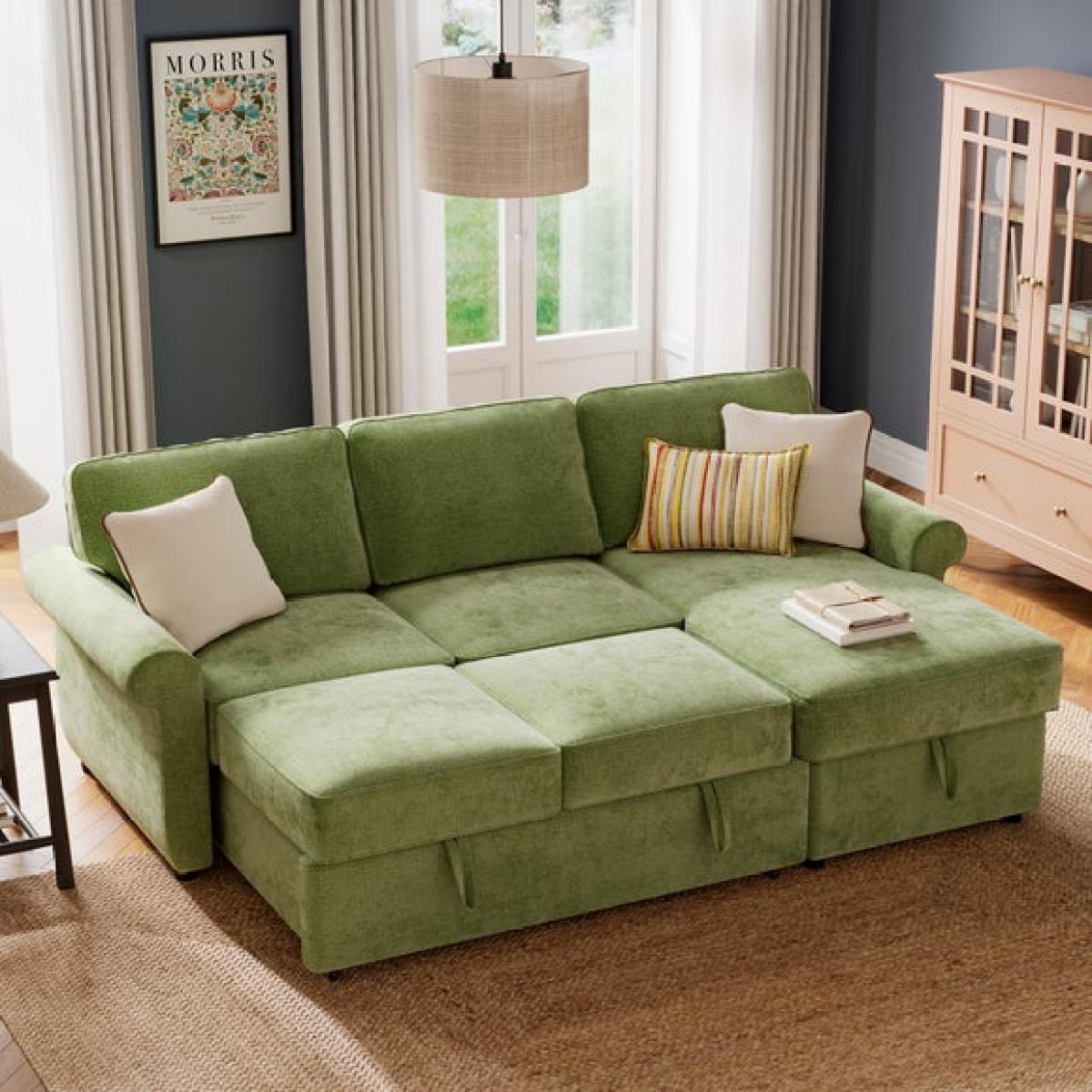 Eleanor Luxe Chenille Corner Trundle Sofa Bed