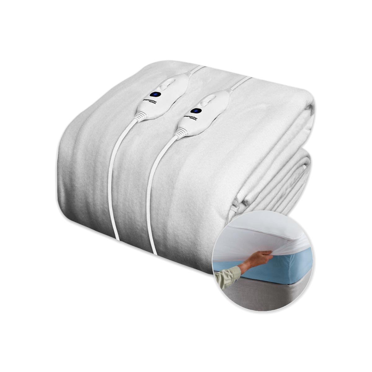 Dreamcatcher Single Luxury Polyester Heated Electric Under Blanket with LED Detachable Controller, Machine Washable & 3 Comfort Settings Keep the cold away with the Dreamcatcher luxury polyester under Blanket. With 3 settings, auto switch off, fast heat up and a total safety system, the blanket is certain to have the right function no matter how cold it gets outside without worrying about fire safety. The ultra-thin wires and the soft polyester finish provide you with a comfortable nights sleep. Now washing machine safe, cleaning your electric under blanket has never been easier. Easy to use thanks to the simple to use control, the under blanket is the perfect addition to every household. Luxury Polyester electric under blanket. Fitted Mattress Cover ensuring the blanket stays in position night after night. Ultra-thin wires and the soft Polyester finish provides you with a comfortable nights sleep, Quick heat up time, with 3 controller heat settings for greater control & luxurious comfort. Easy to use with the LED dual controllers. The elasticated skirt will keep it firmly in place all night long.