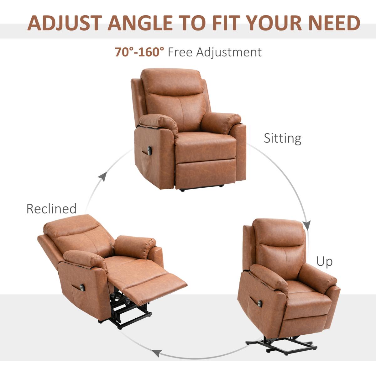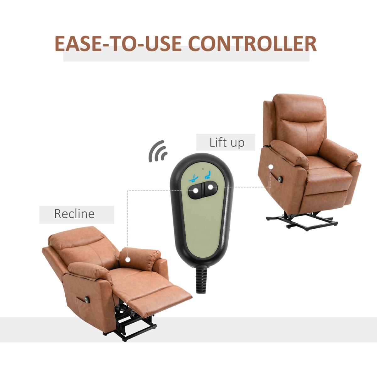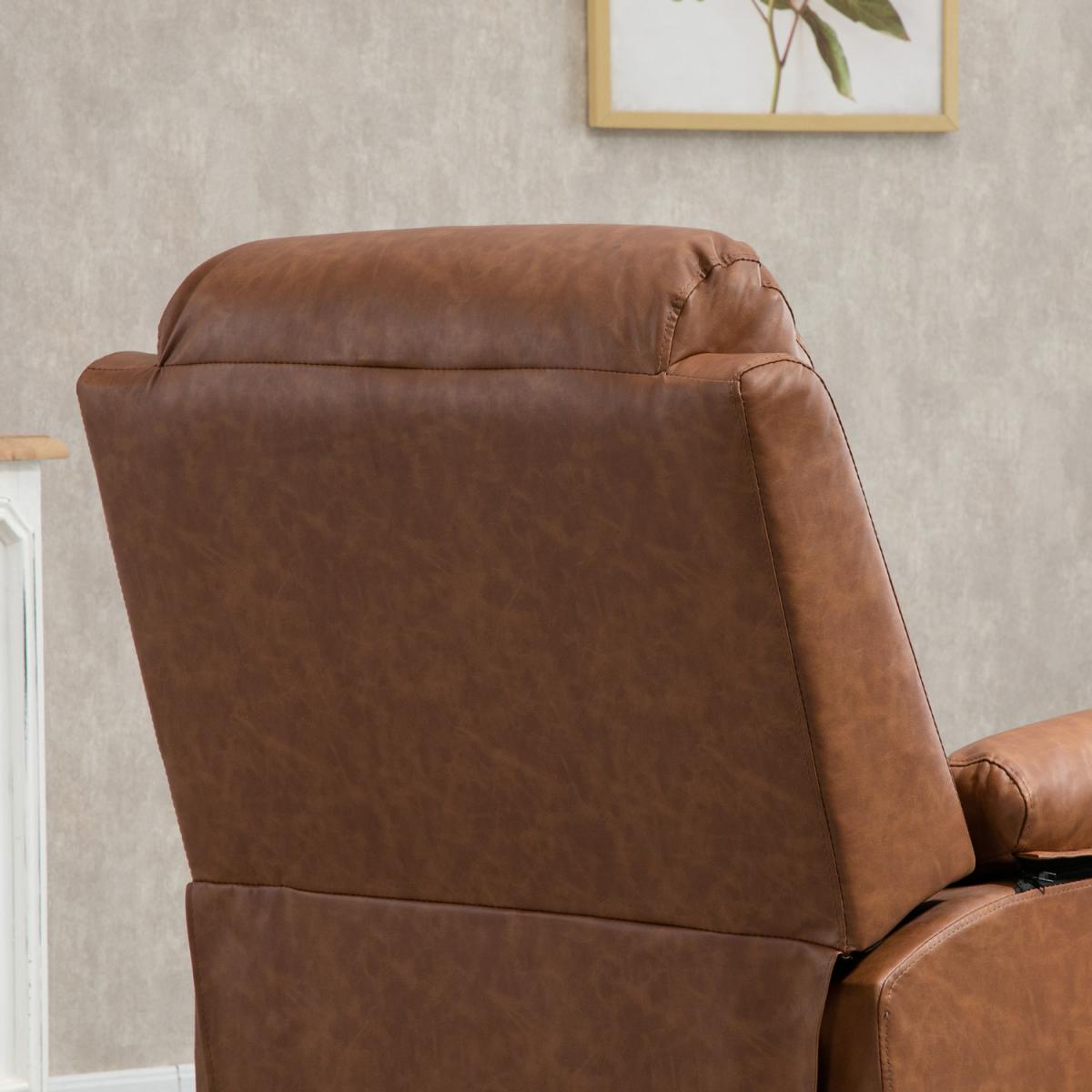I’m a fan of this brown lift chair for its straightforward blend of comfort and ease of use - the electric mechanism is discreet and the cushioning feels supportive without looking bulky. It sits comfortably in both modern and transitional schemes, pairing well with neutral walls and warm wooden accents. To style, position it as a reading nook beside a slimline floor lamp and a simple side table in oak or ash. A textured throw in a muted shade and a small patterned cushion will soften the leather look without overpowering it. Keep surrounding décor minimal so the chair remains the practical focal point.