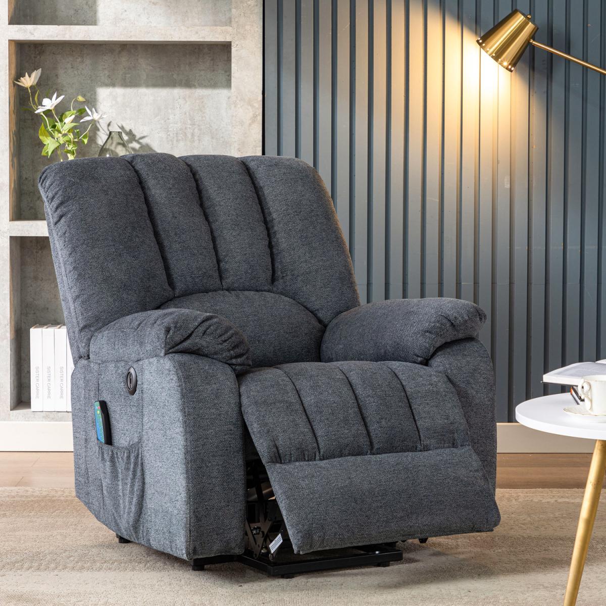 Single Motor Recliner:The lift chair is powered by an electric and single electric motor; the motor is extremely quiet, working smoothly and independently. You can get to any position you want, adjusting this recliner by the button up to 160 degrees. The chair is particularly good for people who have leg and back problems to stand up easily. Massage and Heating Function:The 8 massage points target four stress parts (back, lumbar, thigh, leg) with 5 adjustable modes and two intensity options. The recliner chair has a heating function on the lumbar part while massaging, which will be good for waist pressure relief and blood circulation, relieve stress and fatigue. You can use the timer function of 15/30/60 minutes to set massage time. Sturdy and Functional: Modern style and functionality merge together with a single motor and heavy-duty mechanism, lay back or lift and tilt to stand, smoothly adjust to any customised position. The chair also comes with a side pouch for magazines, books, and remotes, meaning once you're settled in, you won't have to worry about getting up to get a drink or turn the TV on. Easy to Assemble:The electric recliner chair comes with two boxes, and we ship them on the same day, but the carrier may deliver them to your door on different days. Easy assembly required and no tools needed. Any issue with the chair, please feel free to contact with us at any time.