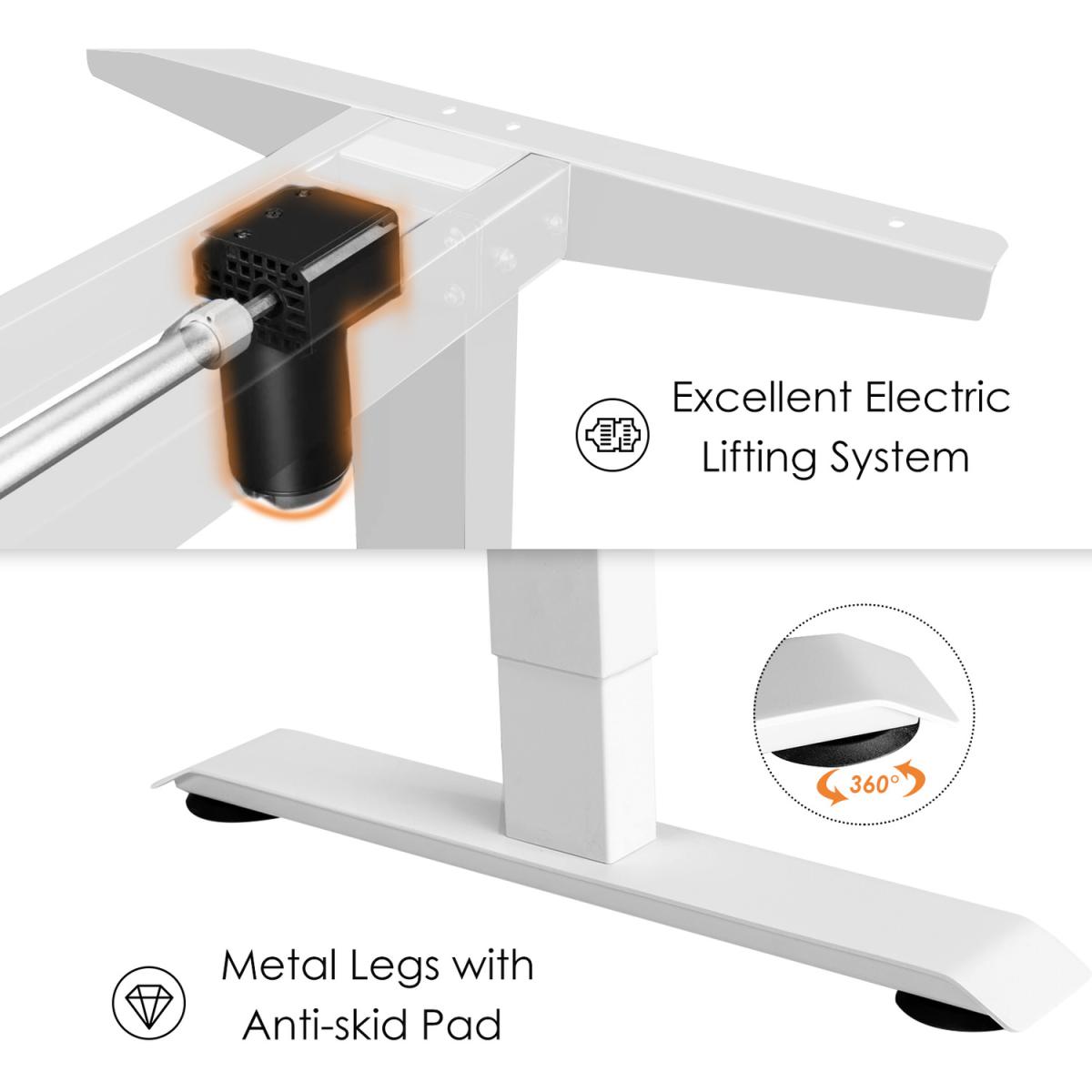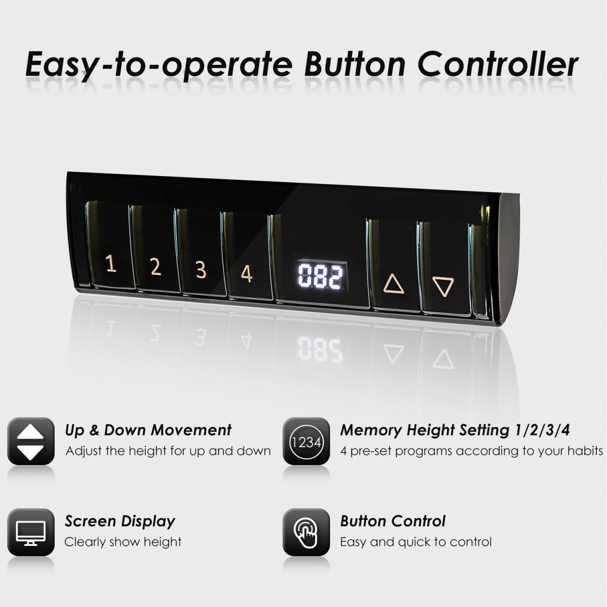 Good news for home office workers! This electric standing desk gives you a flexible and ergonomic workstation that is great for your well-being and work production. Pressing the button on the controller, you can easily adjust the desktop height between 72 and 116cm, so as to sit or stand to work alternatively. What is more, the smart controller has programmable memory positions, which allow you to save different heights for tutoring, working or leisure purpose. In addition to smooth height adjustment, the computer workstation also provides spacious tabletop with a distinctive splice structure. Meanwhile, the tabletop is made of thickened particle board for excellent durability. Together with the robust steel frame, the stand-up desk is sure to serve you for a long time. More importantly, there are safety protections and anti-collision technology to protect the motor as well as the users.