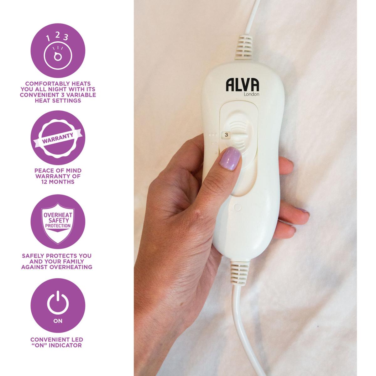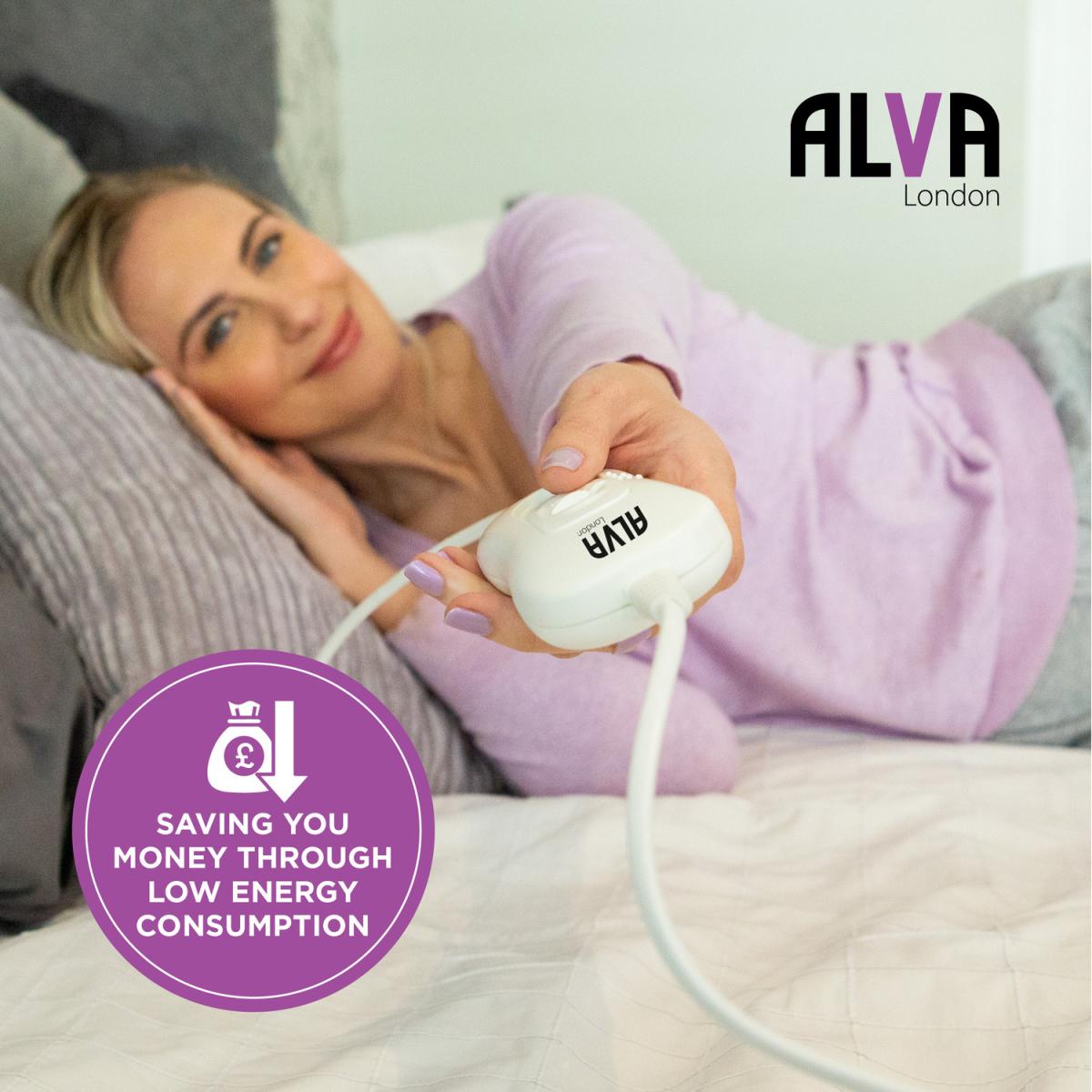 We make the Alva Electric Under Blanket to keep you warm and cosy, where you need it, during the cold winter nights. It uses a minimal amount of electricity. Designed to be used on single, double and king-sized beds. Your world is better with ALVACan there be anything better than getting into a pre-warmed bed on a chilly winters night?Keep your bed and body warm and cosy throughout the night, with this inviting electric blanket. The safe, energy efficient and cost-effective way to stay warm and comfortable this winter. Serves as a comfortable mattress protector too.