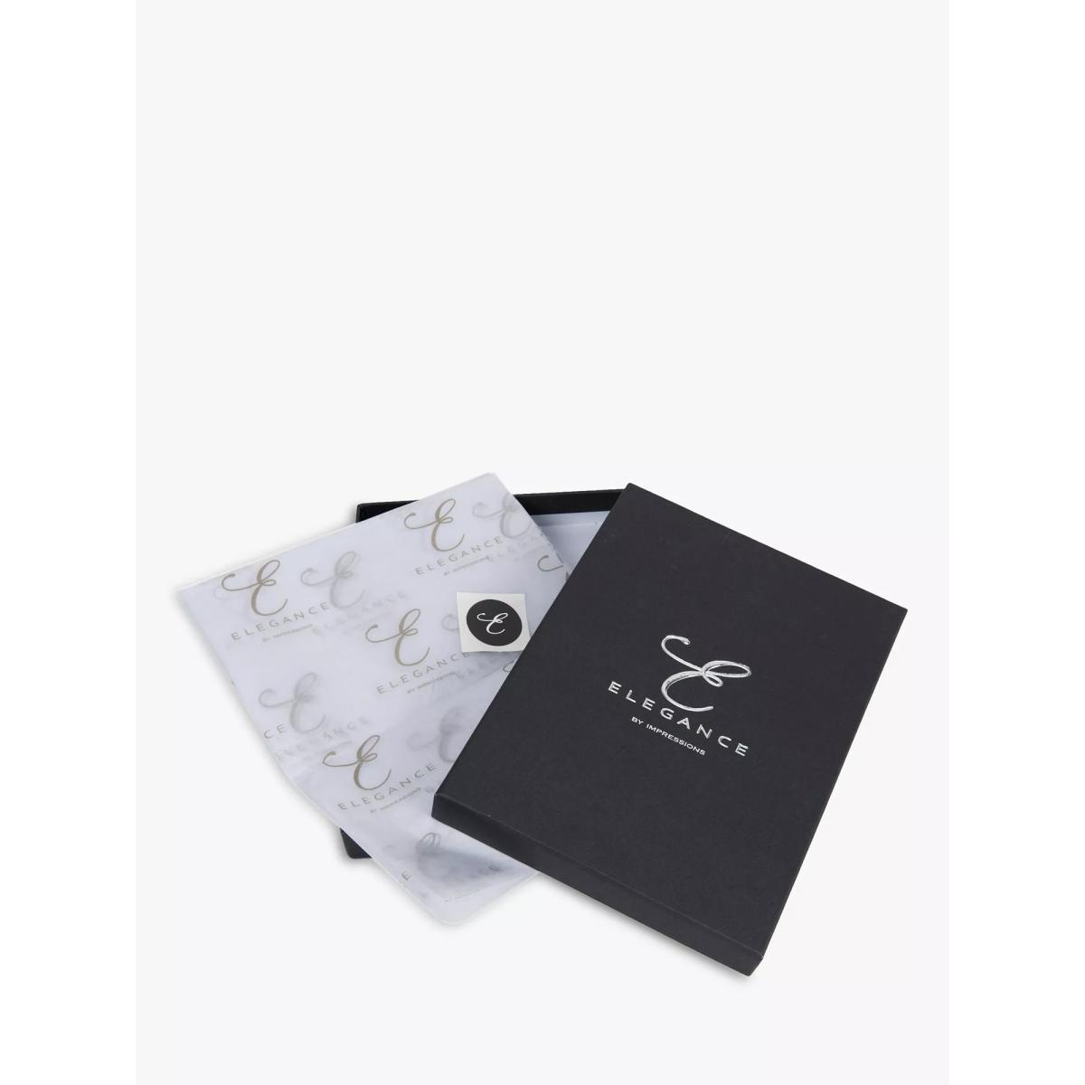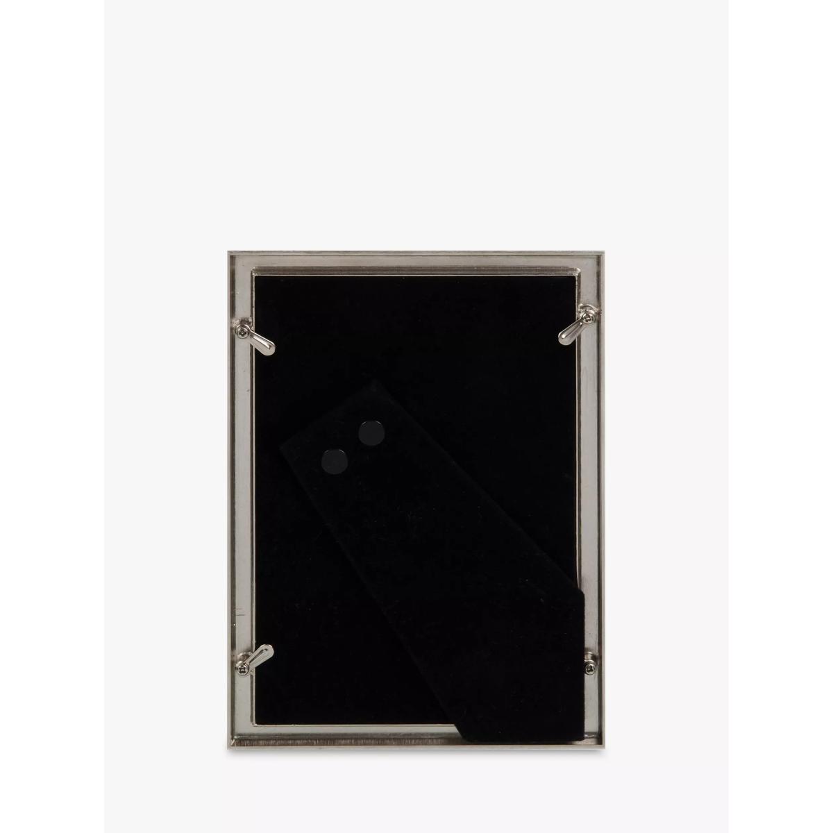 A gift-boxed nickel-plated photo frame with a grey faux-shagreen insert, from Elegance by Impressions. The frame can be displayed freestanding, vertically or horizontally, using the black velveteen standing strut. It's presented in a luxury signature Elegance gift box. Elegance by Impressions is a luxury collection of frames featuring the finest craftsmanship and the highest quality materials. Each Elegance frame comes complete with a signature foil-embossed gift box with branded tissue paper and a foiled sticker seal.