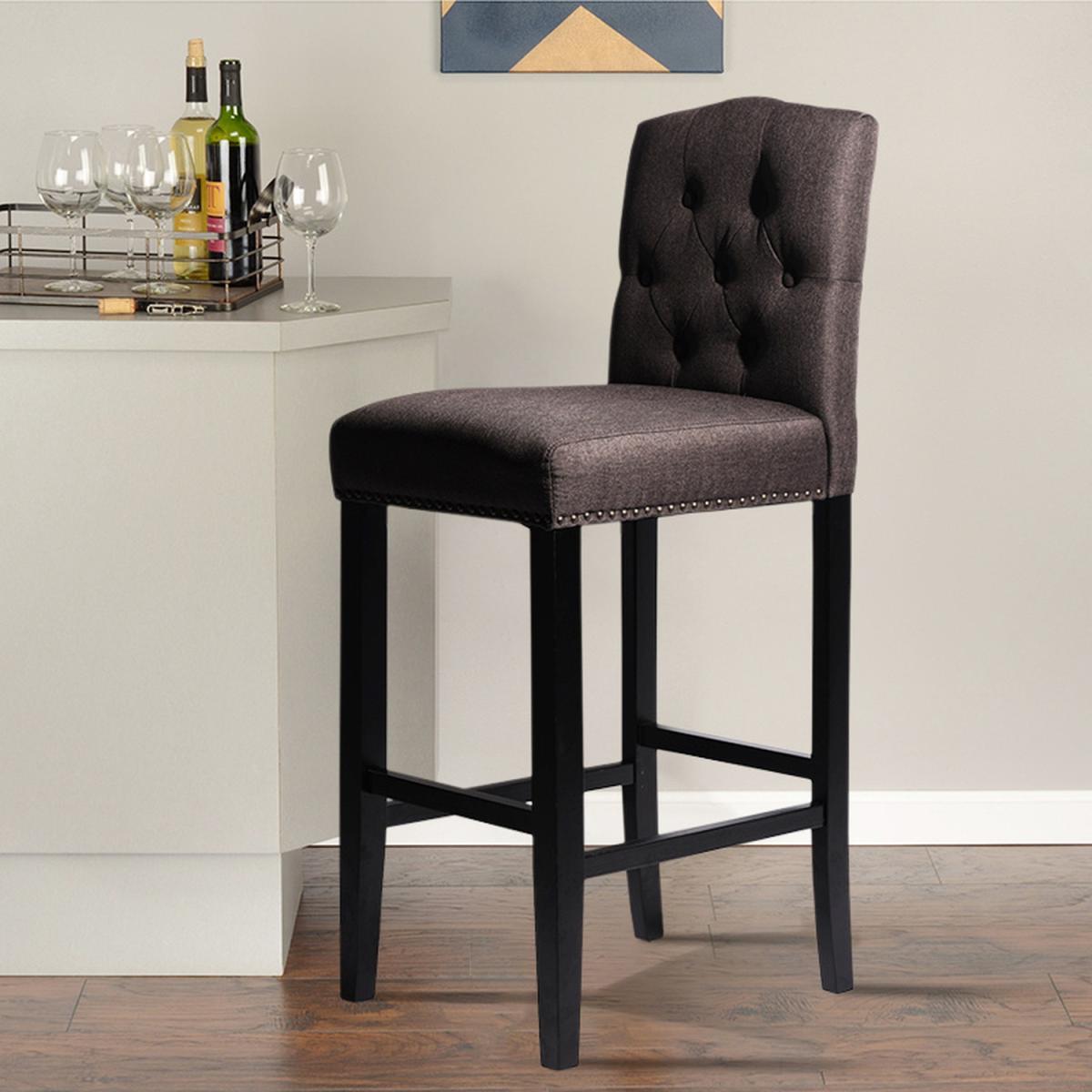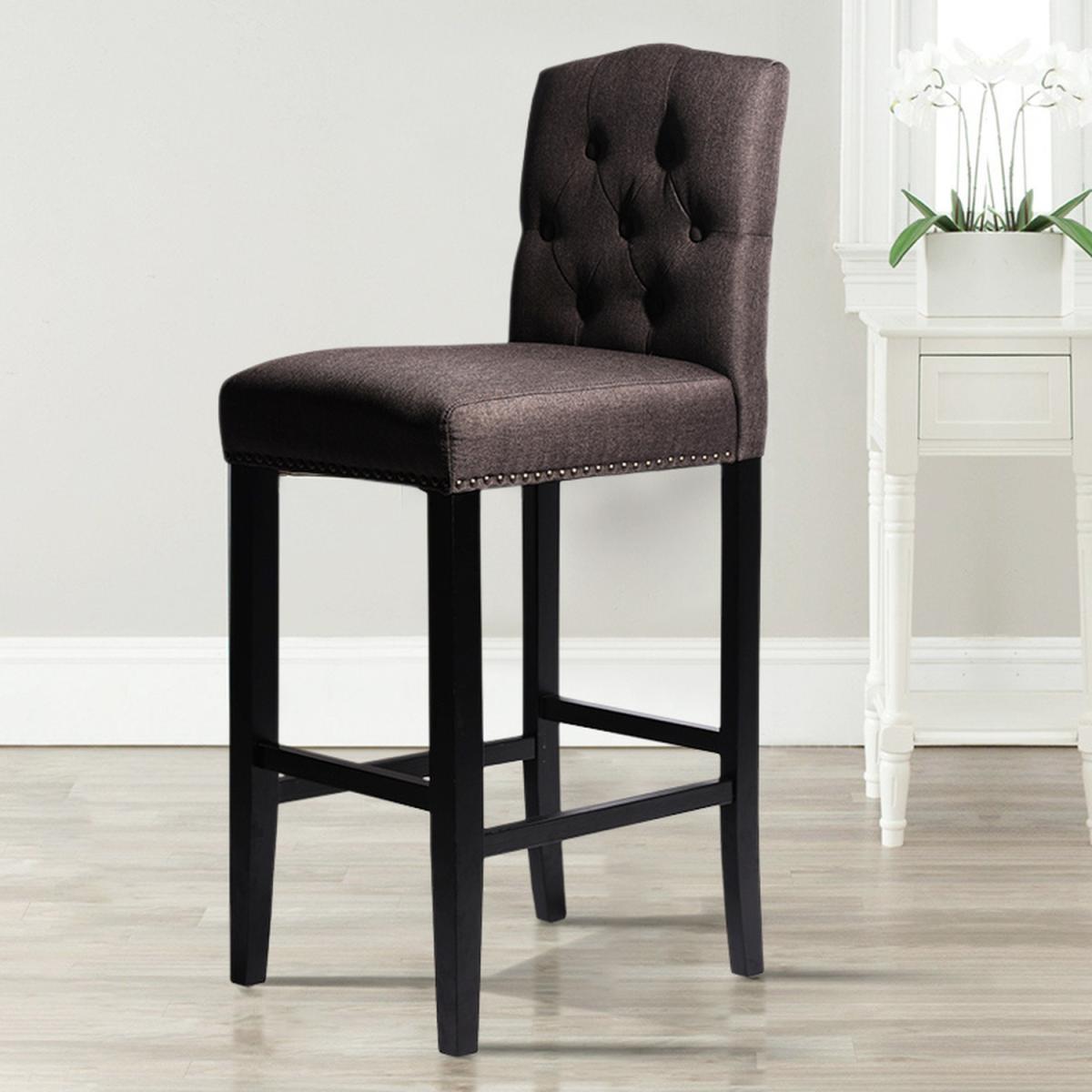 I love this dark brown bar stool for its versatile and timeless design, making it a great addition to both classic and contemporary interiors. Its upholstered, slightly tufted back offers a comfortable yet sophisticated look, perfect for home bars, kitchen islands, or dining areas. The rich colour works well with neutral tones or warm woods, and it can be styled alongside metallic accents for a modern touch. Practical styling tips include pairing it with a cosy, textured rug underneath or adding cushions for extra comfort and visual interest. Its compact size makes it ideal for smaller spaces or for stacking with other seating to create a flexible, inviting environment.