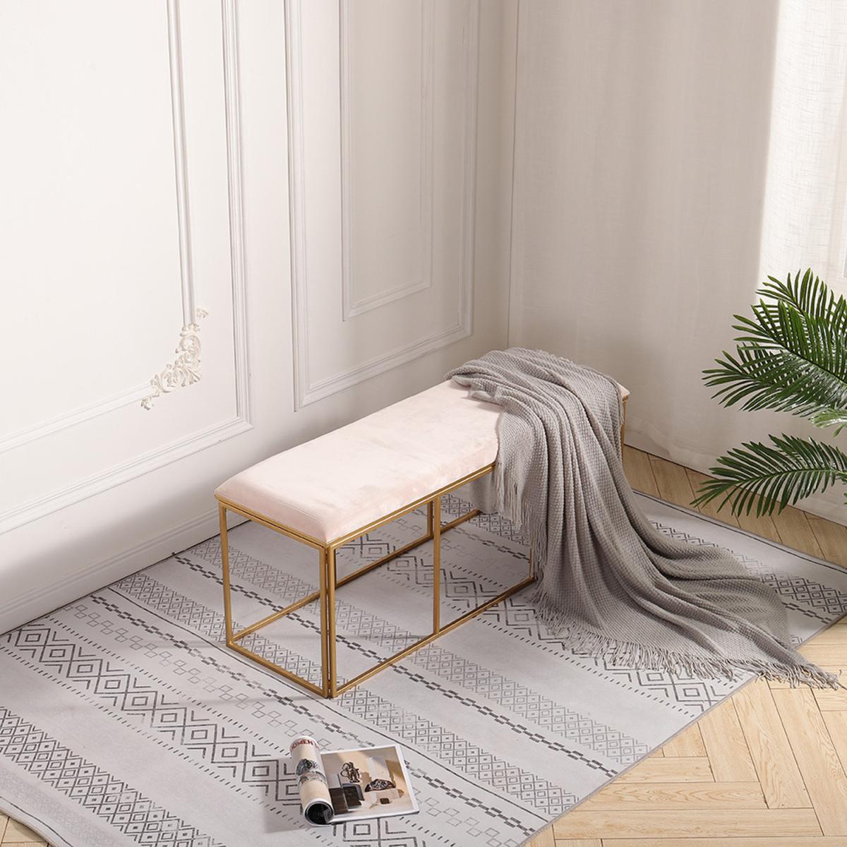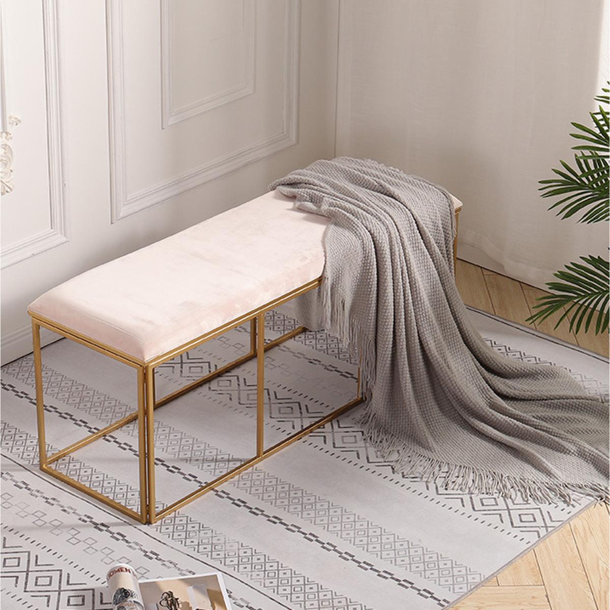 This pink bench seat offers a contemporary touch with its soft hue and sleek gold frame, making it a versatile piece for both modern and glam interiors. I love how it can serve as a practical seating option in a hallway or dressing area, while also adding a pop of colour to neutral schemes. For styling tips, pair it with plush cushions or throws to create a cosy corner, or position it beneath art or mirrors to enhance visual interest. It works particularly well in bedrooms, entryways, or even boutique retail spaces where a subtle hint of elegance is desired. Keep the surrounding decor minimal to let the pink and gold finish stand out, or go bold with contrasting colours for a more eclectic look.