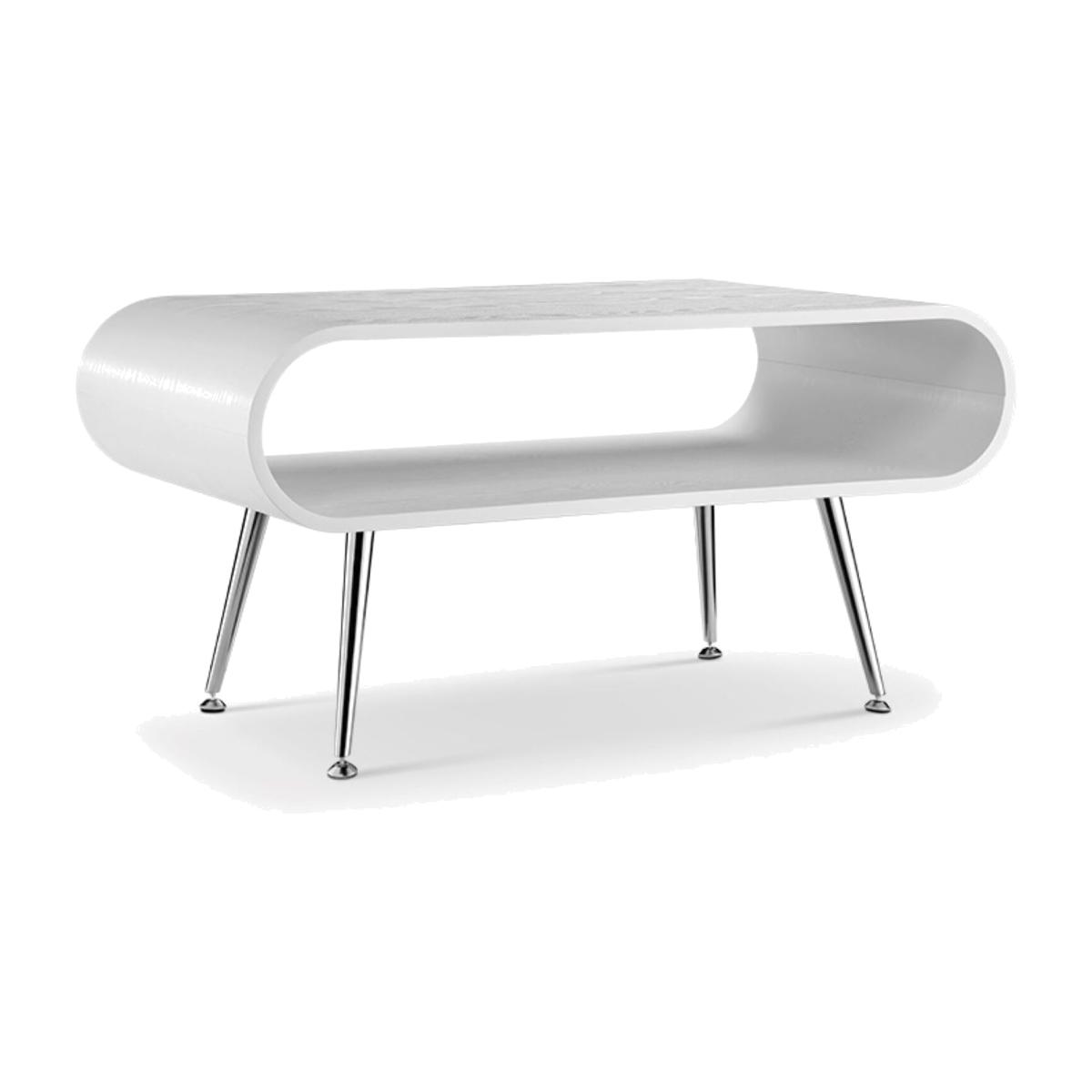 This Elegant Coffee Table is a sleek and modern choice for any home. Combining monochrome tones and metallic legs creates a stylish, elegant look that is perfect for contemporary spaces. The metallic leg finish adds a touch of shine and sophistication, while the painted veneer provides a contemporary feel. It's an excellent option for those who want to add a touch of modern elegance to their space. The coffee table is perfect for creating a sophisticated centrepiece - great for keeping your cup of tea in arms reach, your TV remotes in one place, and more. It even has a shelf beneath the table top to help keep your lounge organised.