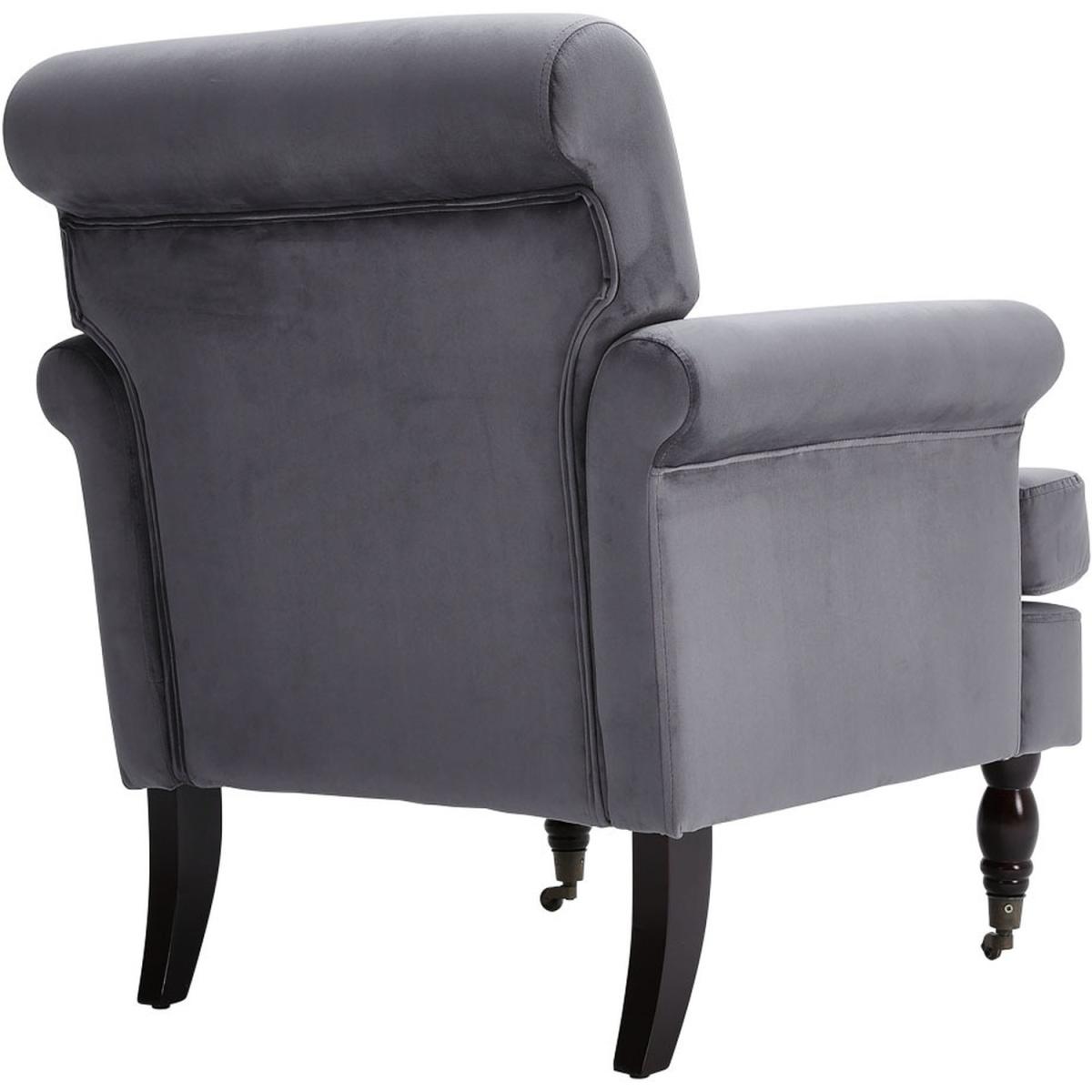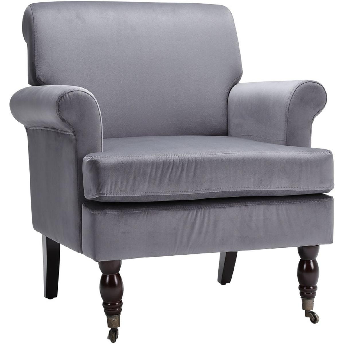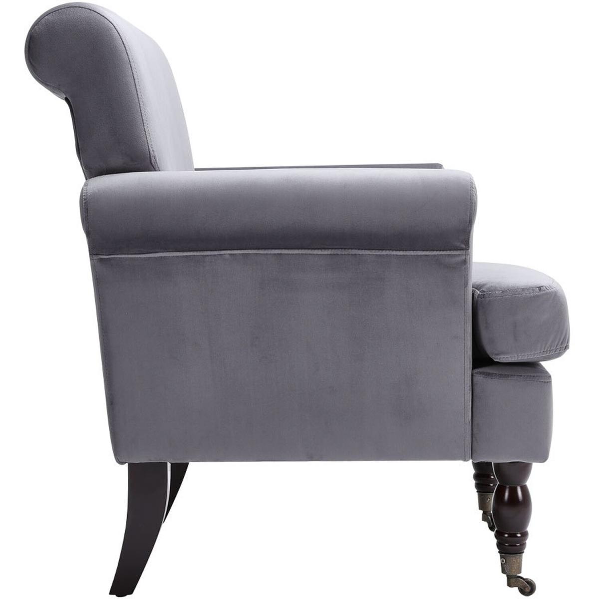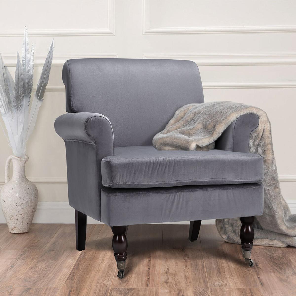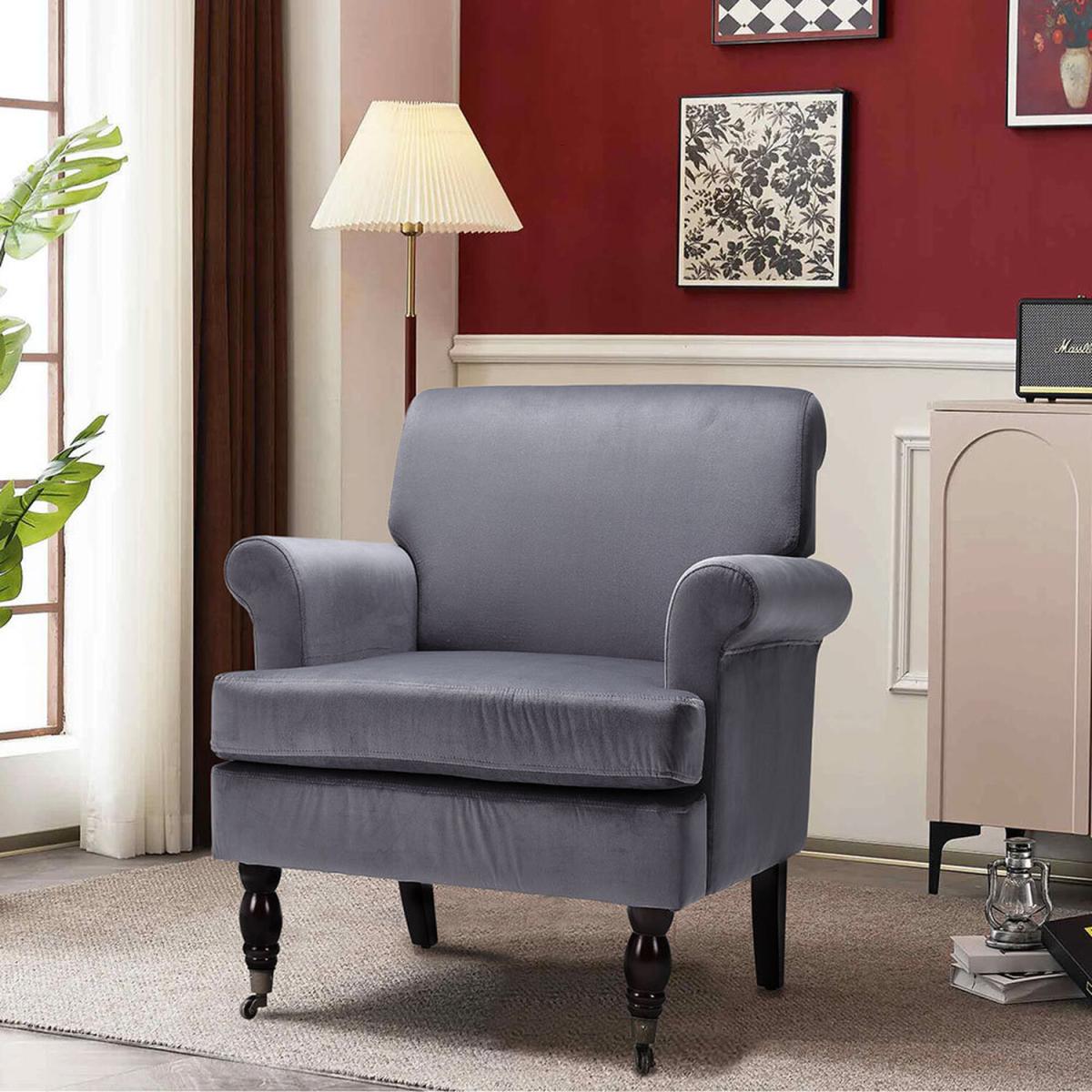 Elegant Contemporary Velvet Armchair with Casters - Grey
