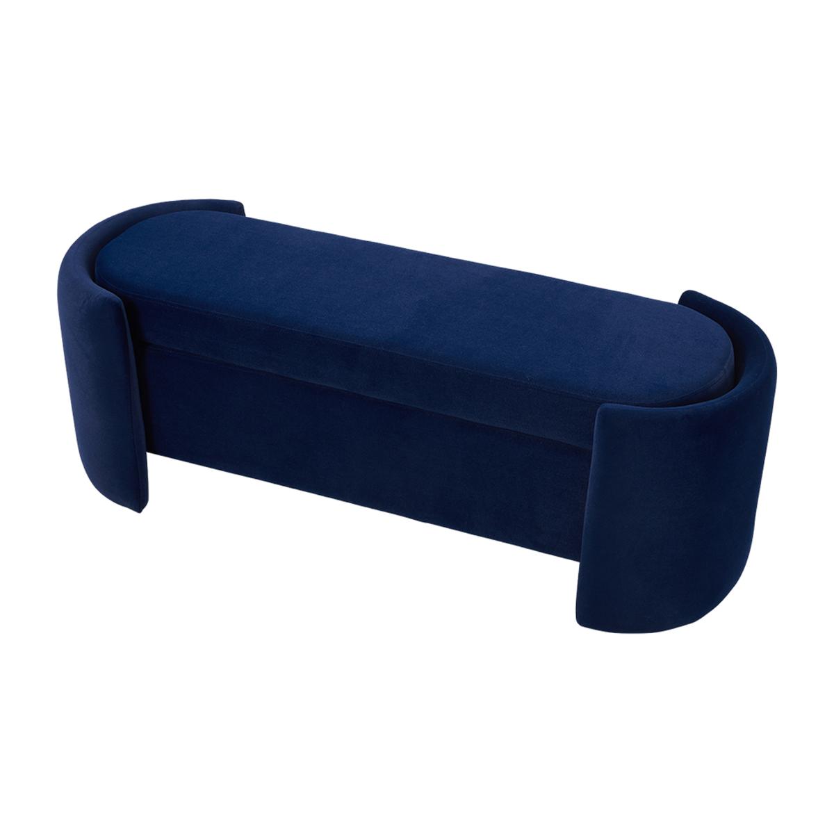 Elegant Curved Blue Storage Ottoman Bench Seats - Blue