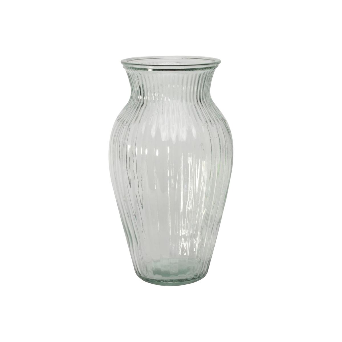 I love this clear grooved glass vase for its versatility and understated elegance. Its simple, neutral tone makes it adaptable across a range of interiors, from modern minimalist spaces to more traditional or eclectic settings. Because of its transparent nature and subtle grooved texture, it adds visual interest without overwhelming a vignette. For styling tips, I’d suggest layered arrangements with fresh flowers or greenery to bring colour and life, or even using it as a standalone piece on a mantel or sideboard for a clean, sophisticated look. It works well in both casual and formal environments, making it a reliable choice for enhancing various interior styles.