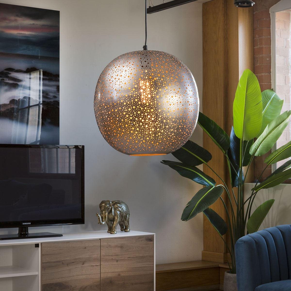 Elegant Unique Silver Gold Light Pendant Patterned Pressed Steel 340mm