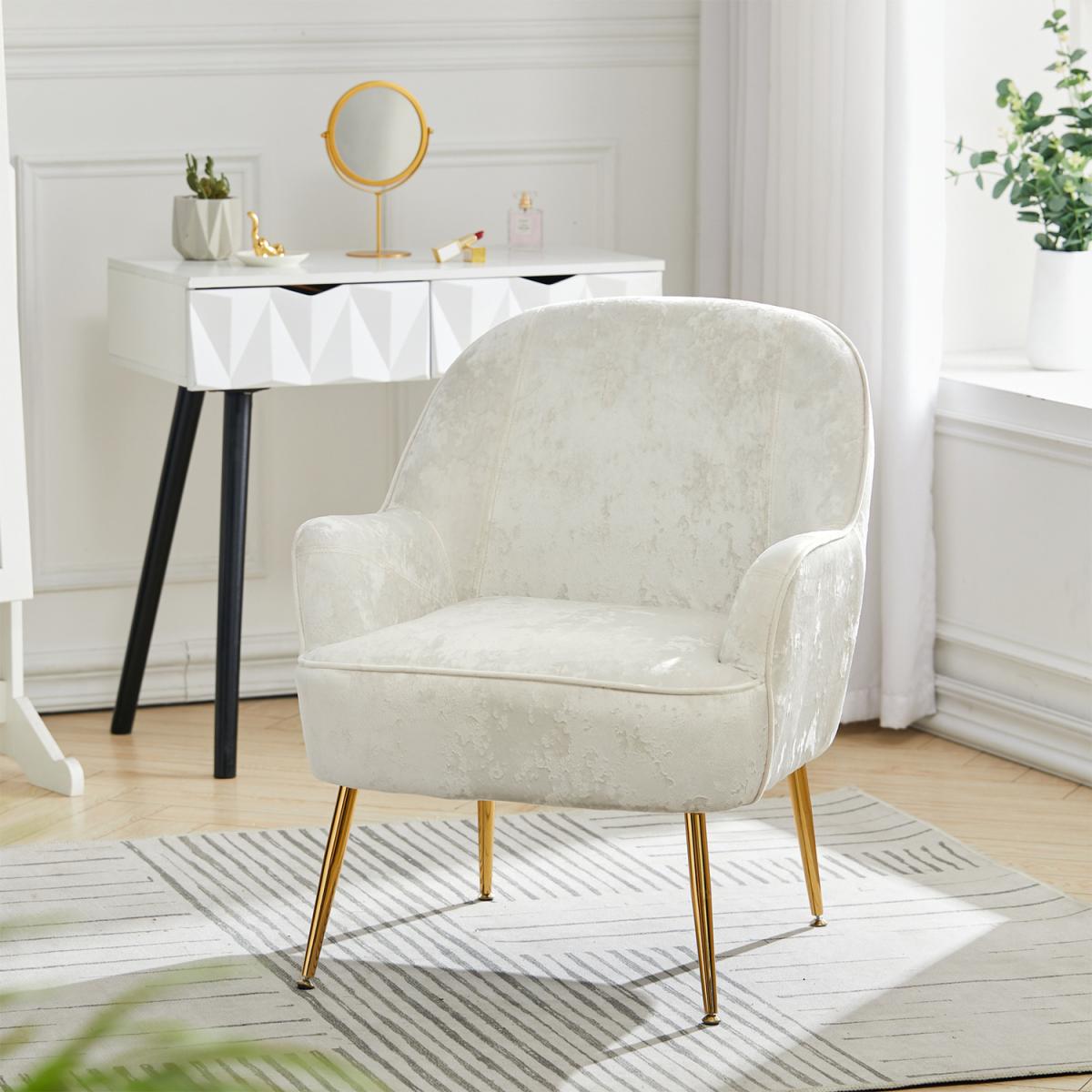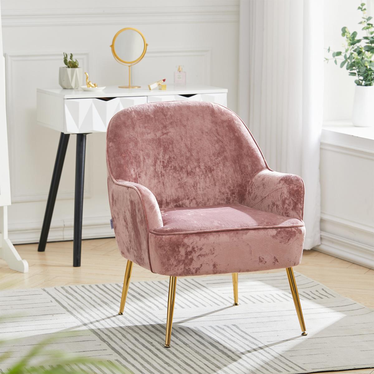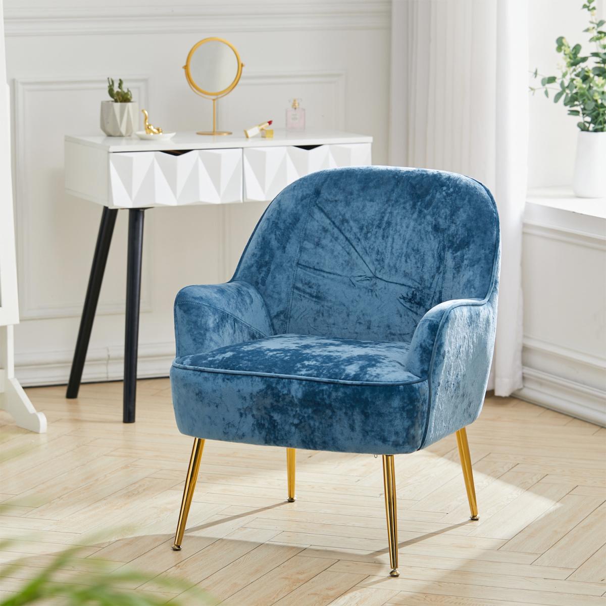 Introducing our Velvet Armchair with Gold Legs, a leisure accent chair perfect for elevating the ambience of your living room or cafe.1. Visual Appeal Meets Comfort:This upholstered accent chair combines stunning visuals with comfortable seating, thanks to its padded seat, ergonomic inclining backrest, and neatly designed armrests.2. Effortless Elegance: Featuring an elegant style, meticulous stitching details, and sleek metal legs with a gold finish, this chair adds a touch of sophistication to any room.3. Neat and Tidy: Crafted with quality fabric and piped edges, this chair boasts a clean and polished finish, enhancing its overall aesthetic.4. Ergonomic Design:The inclining backrest is designed for ergonomic support, ensuring your comfort during extended periods of relaxation.5. Easy Assembly: Follow the provided instructions for a hassle-free assembly process, so you can enjoy your chair in no time.6. Simple Maintenance: Keeping your chair spotless is a breeze - just wipe it clean with a soft, dry cloth to maintain its pristine appearance. Whether it's in your living room, dining room, home office, or a cosy corner, this velvet armchair is as perfect for your personal space as it is for your cafe's ambience. Upgrade your seating experience with this blend of style, comfort, and quality craftsmanship.