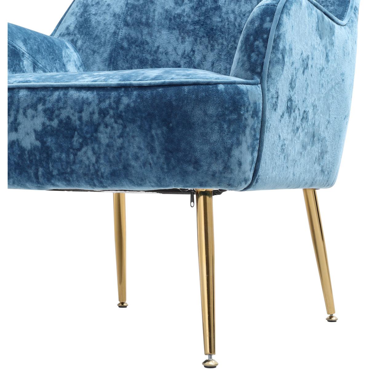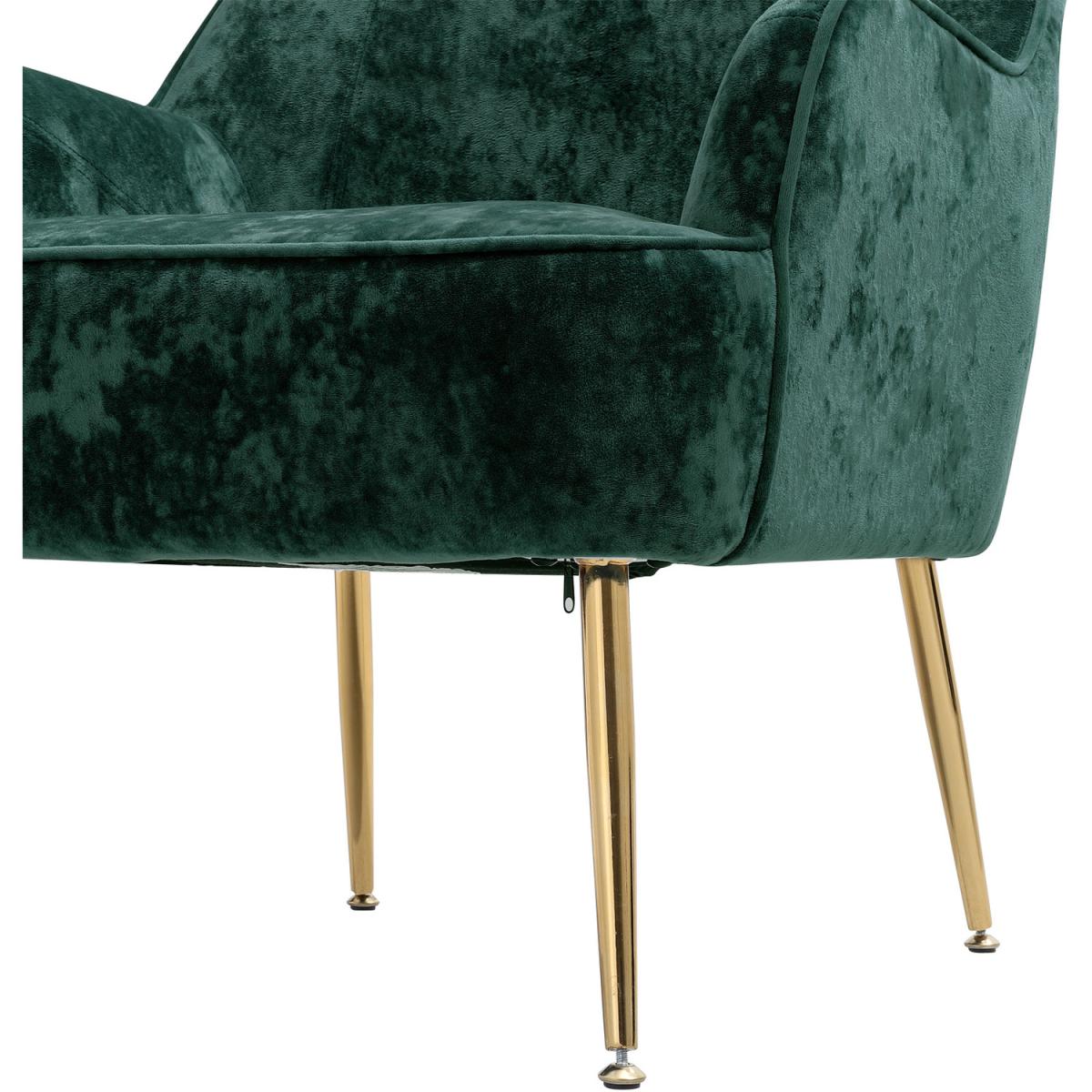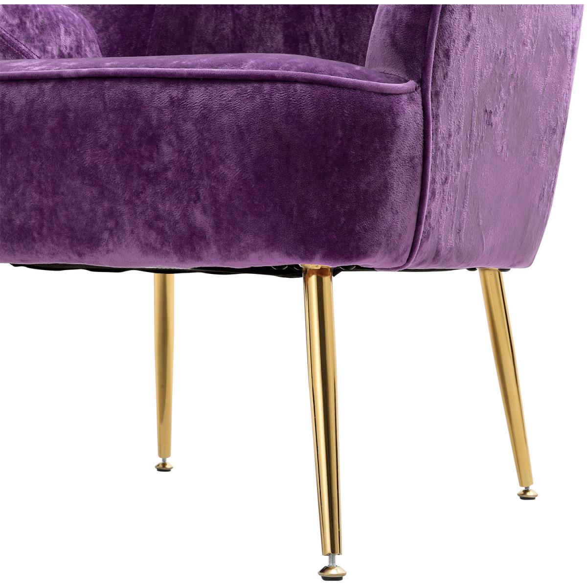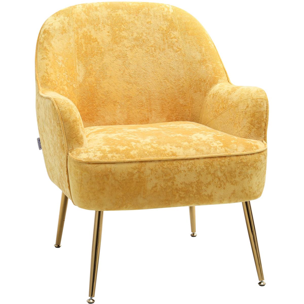 Introducing our Velvet Armchair with Gold Legs, a leisure accent chair perfect for elevating the ambience of your living room or cafe.1. Visual Appeal Meets Comfort:This upholstered accent chair combines stunning visuals with comfortable seating, thanks to its padded seat, ergonomic inclining backrest, and neatly designed armrests.2. Effortless Elegance: Featuring an elegant style, meticulous stitching details, and sleek metal legs with a gold finish, this chair adds a touch of sophistication to any room.3. Neat and Tidy: Crafted with quality fabric and piped edges, this chair boasts a clean and polished finish, enhancing its overall aesthetic.4. Ergonomic Design:The inclining backrest is designed for ergonomic support, ensuring your comfort during extended periods of relaxation.5. Easy Assembly: Follow the provided instructions for a hassle-free assembly process, so you can enjoy your chair in no time.6. Simple Maintenance: Keeping your chair spotless is a breeze - just wipe it clean with a soft, dry cloth to maintain its pristine appearance. Whether it's in your living room, dining room, home office, or a cosy corner, this velvet armchair is as perfect for your personal space as it is for your cafe's ambience. Upgrade your seating experience with this blend of style, comfort, and quality craftsmanship.