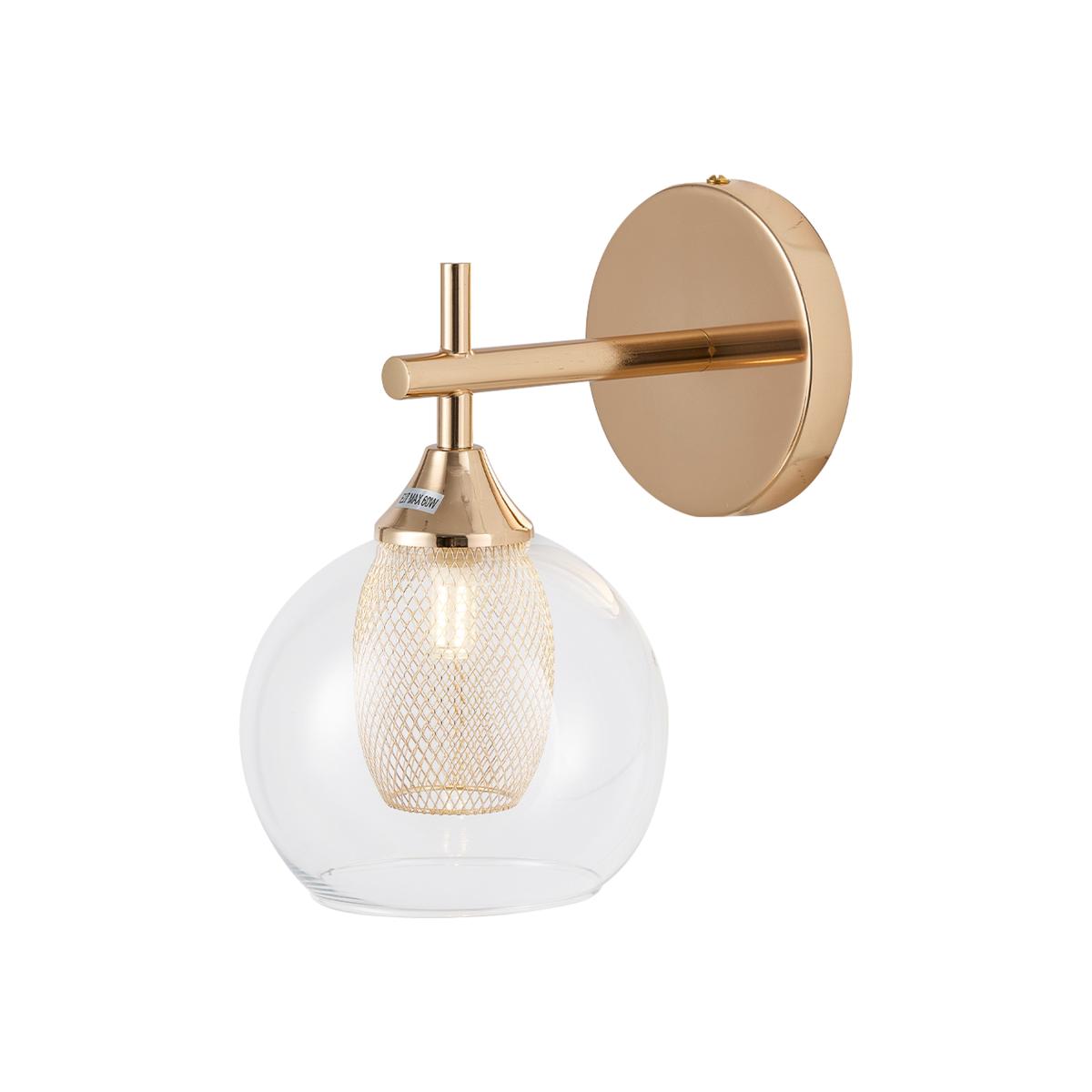 This wall light embodies a blend of modern and elegant design concepts. It features a matte gold finish on the metal parts, exuding a subtle luxurious sheen. The transparent glass globe lampshade, embedded with a golden metal mesh structure, not only protects the bulb but also adds visual depth. It emits a warm and soft light, creating a cosy and comfortable lighting effect through this dual-layer filtering. Its minimalist and stylish design suits various indoor environments, making it a decorative highlight whether in the living room, bedroom, or hallway, adding a touch of unique artistic flair to your home.