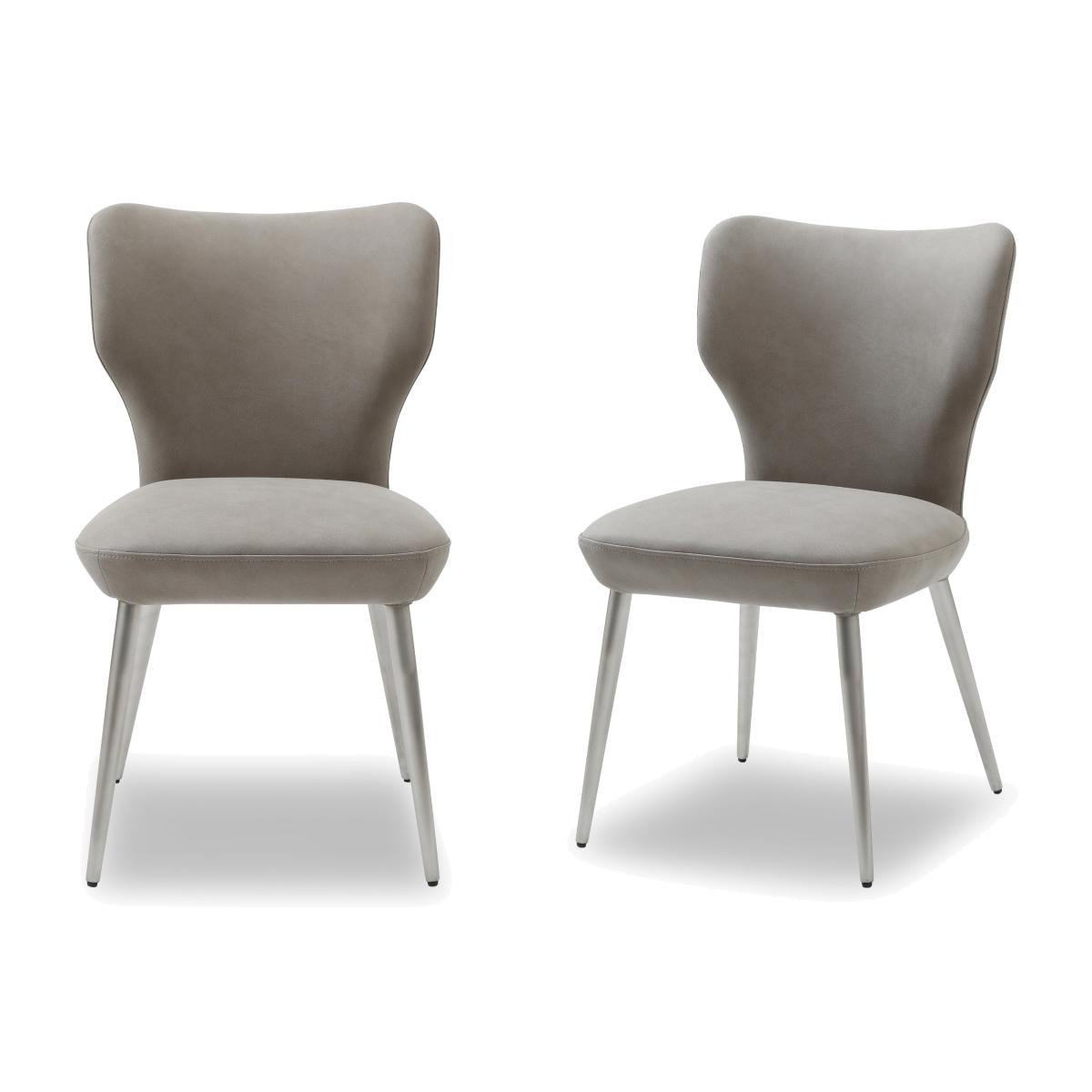 Luxurious, opulent, exquisite – our Elegante collection of marble furniture is all this and more. Or perhaps we should say less. Incredibly well-priced, this range makes the beauty of natural marble furniture a real option for more homes. Showcasing bold sculptural lines, authentic marble patterning and a sophisticated neutral colour palette, the collection is designed to enhance and elevate the aesthetic of any modern home. This carefully curated collection includes two sizes of dining tables, dining sets, a sideboard, occasional tables and dining room seating. The Elegante range is exclusively available at Furniture Village. This pair of statement dining chairs is designed to partner with our showstopping marble Elegante dining table but look equally stylish in any modern dining setting. In a choice of colours. Why you'll love it Pair of modern dining chairs with striking lines. Ultra-comfortable pocket spring seats. Brushed stainless steel legs. Upholstered in a choice of colours. Designed to partner with the range’s marble dining tables – or any stylish modern table. Also available in sets of 4 and 6 dining chairs. A Furniture Village exclusive. This pair of dining chairs is part of our Elegante range. What you need to know Metal frames and legs. Cushioned with foam. Item code: ELGE2CH-TPE-001