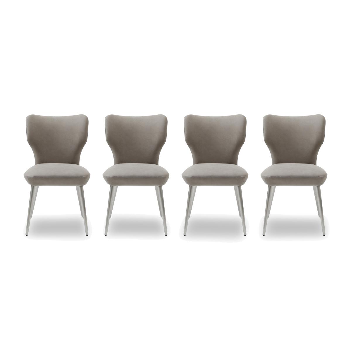 Luxurious, opulent, exquisite – our Elegante collection of marble furniture is all this and more. Or perhaps we should say less. Incredibly well-priced, this range makes the beauty of natural marble furniture a real option for more homes. Showcasing bold sculptural lines, authentic marble patterning and a sophisticated neutral colour palette, the collection is designed to enhance and elevate the aesthetic of any modern home. This carefully curated collection includes two sizes of dining tables, dining sets, a sideboard, occasional tables and dining room seating. The Elegante range is exclusively available at Furniture Village. This pair of statement dining chairs is designed to partner with our showstopping marble Elegante dining table but look equally stylish in any modern dining setting. In a choice of colours. Why you'll love it Set of 4 modern dining chairs with striking lines. Ultra-comfortable pocket spring seats. Brushed stainless steel legs. Upholstered in a choice of colours. Designed to partner with the range’s marble dining tables – or any stylish modern table. Also available in sets of 2 and 6 dining chairs. A Furniture Village exclusive. This set of 4 dining chairs is part of our Elegante range. What you need to know Metal frames and legs. Cushioned with foam. Item code: ELGE4CH-TPE-001