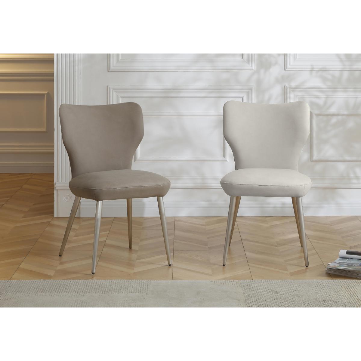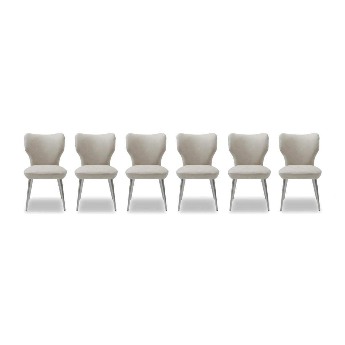 Luxurious, opulent, exquisite – our Elegante collection of marble furniture is all this and more. Or perhaps we should say less. Incredibly well-priced, this range makes the beauty of natural marble furniture a real option for more homes. Showcasing bold sculptural lines, authentic marble patterning and a sophisticated neutral colour palette, the collection is designed to enhance and elevate the aesthetic of any modern home. This carefully curated collection includes two sizes of dining tables, dining sets, a sideboard, occasional tables and dining room seating. The Elegante range is exclusively available at Furniture Village. This set of six statement dining chairs is designed to partner with our showstopping marble Elegante dining table but looks equally stylish in any modern dining setting. In a choice of colours. Why you'll love it Set of 6 modern dining chairs with striking lines. Ultra-comfortable pocket spring seats. Brushed stainless steel legs. Upholstered in a choice of colours. Designed to partner with the range’s marble dining tables – or any stylish modern table. Also available in sets of 2 and 4 dining chairs. A Furniture Village exclusive. This set of 6 dining chairs is part of our Elegante range. What you need to know Metal frames and legs. Cushioned with foam. Item code: ELGE6CH-IVOR-001