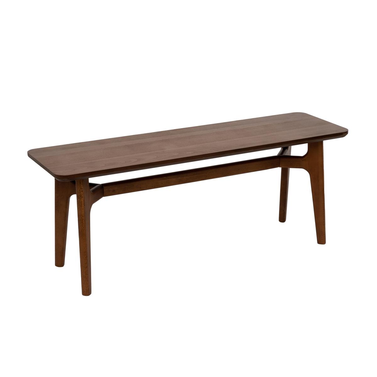Give your kitchen or dining room a warm, stylish look with this Elements Alva dining bench. Enjoy a casual dining set up with this walnut stained dining bench. The design is mid century modern inspired and features solid beech construction that will stand up to years of use.