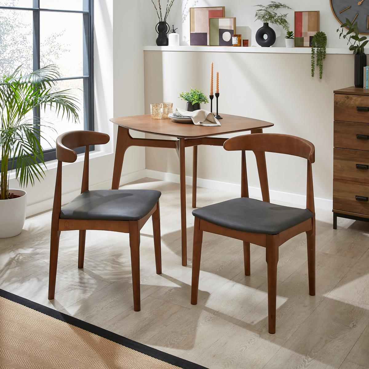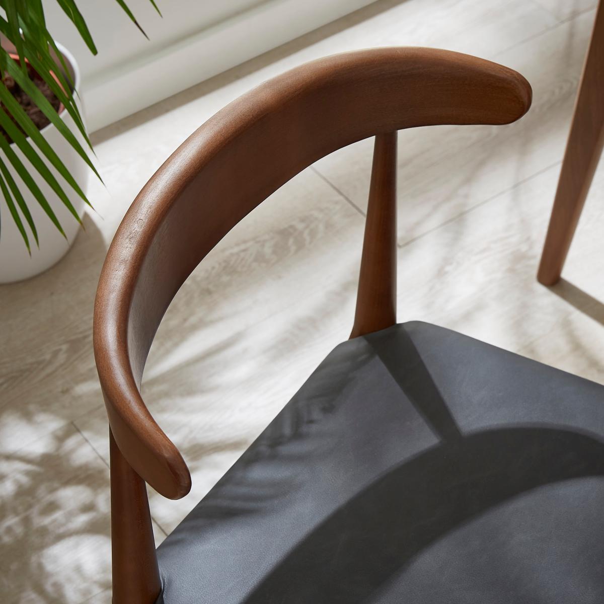 I love this chair for its sleek, modern silhouette combined with the versatile black faux leather, making it a practical yet stylish choice for a variety of dining interiors. It works particularly well in contemporary, minimalist, or mid-century schemes, where its clean lines can really shine. When styling, consider pairing it with warm wood tones or contrasting textures for visual interest, and keep the space light and airy to avoid it feeling too heavy. Practical tips include adding a colourful or textured seat pad for extra comfort and using statement accessories like a rug or standout table to anchor the setting. Overall, it’s a timeless piece that balances style and functionality effortlessly.