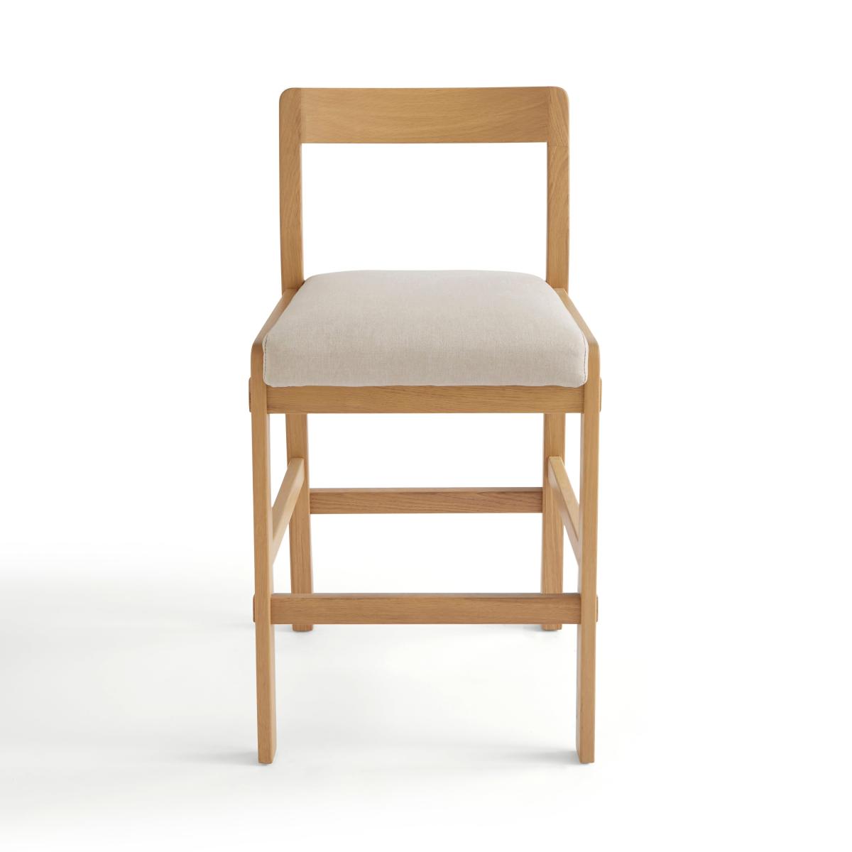 * Foam and fibre filled cushion* Oak frame* Arrives assembled This bar stool combines contemporary design with superior comfort. Featuring a sleek wooden frame and a cushioned seat, this stool offers a chic and modern look that enhances any space. The high backrest provides additional support, making it perfect for long dinners or casual drinks with friends.
