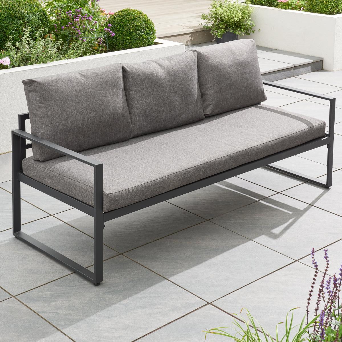 3 Seater Rattan Sofa with Tough Metal Frame - Grey