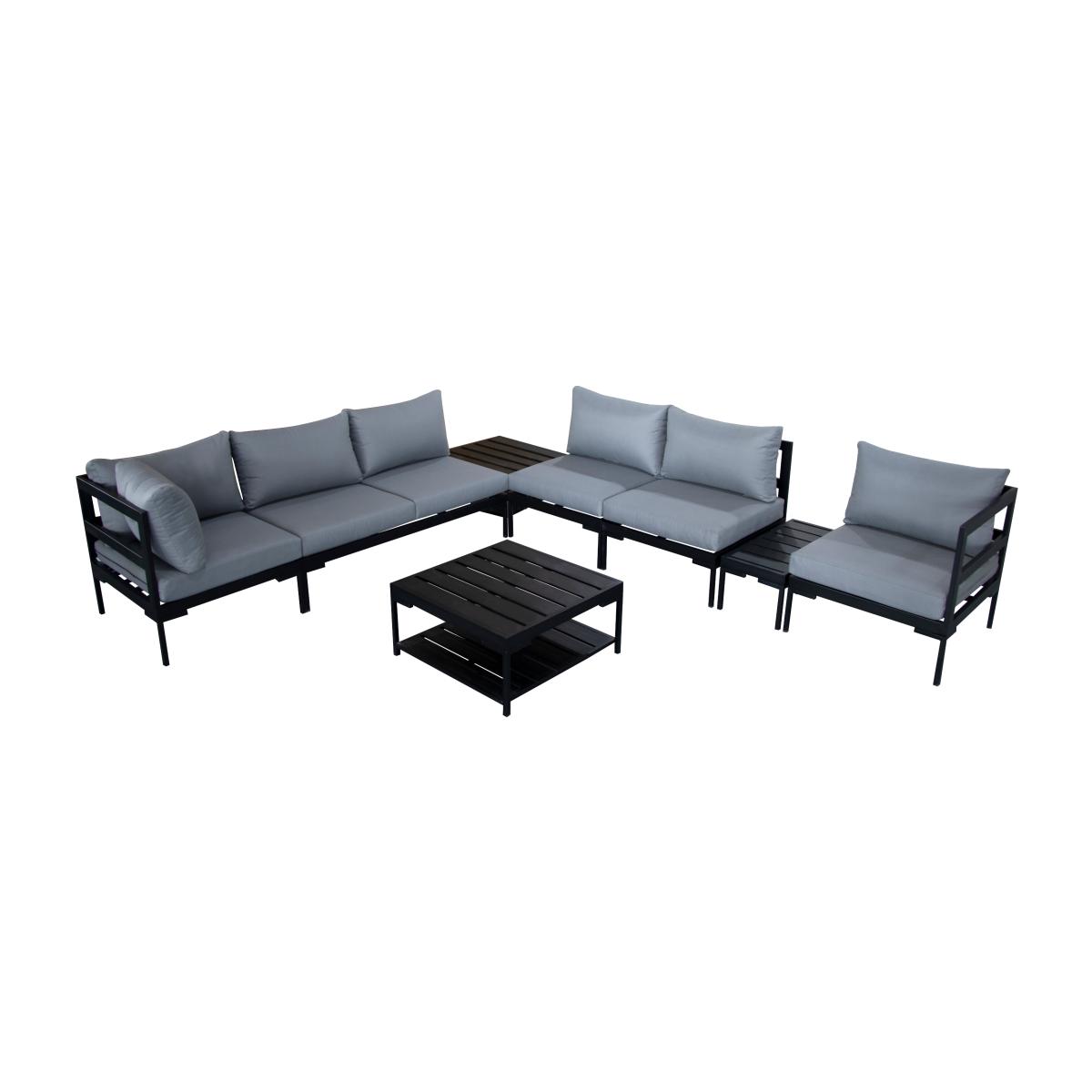 Elements Black Modular 6 Seater Corner Garden Set with Coffee and Side Tables Black