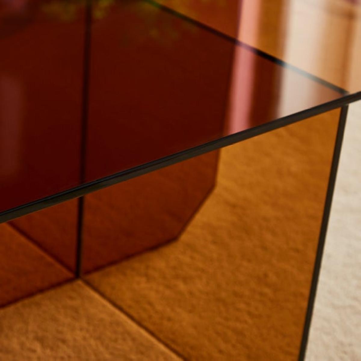 Dunelm Exclusive - Designed and Developed by Dunelm * Choice of colours * Stylish glass * Modern look * Matching side table available The Elements Bowden Glass Coffee Table brings a modern touch to your living area. Fashioned from stylish glass, it’s available in a choice of amber or blue to suit your taste. Its clean lines and contemporary design make it a striking centrepiece, and a stylish way to update your space. For a coordinated aesthetic, a matching side table is also available.