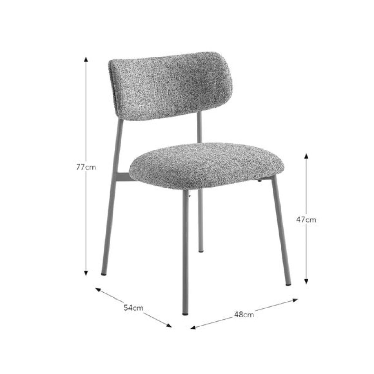 * Sleek, Scandinavian inspired design * Textured Boucle upholstered seat pad * Sturdy metal structure * Corresponding items available Dine in comfort and style with the Elements Cooper Dining Chair, a contemporary piece with a classic twist. Its clean silhouette, inspired by Scandinavian design, is beautifully offset by a tonal boucle upholstered seat pad that introduces soft texture and a subtle sense of luxury. The sturdy metal frame provides lasting support, making it as practical as it is stylish. Perfect for modern dining spaces, this chair pairs effortlessly with the rest of the Cooper range for a cohesive and curated look that feels fresh, functional, and effortlessly elegant.