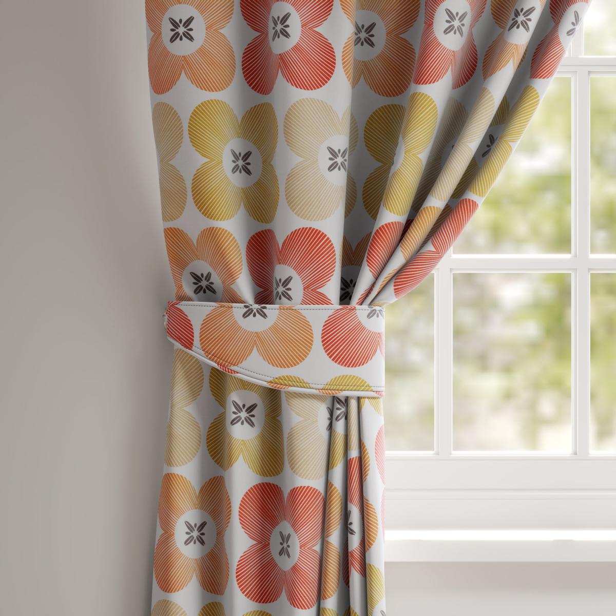 * High Quality 100% Cotton composition * Modern, scandi design in a range of vibrant colourways * Available with a plain or piped edge * Coordinating Made to Measure and Made to Order items available to purchase separately Introduce a modern floral accent to your space with the Elements Daisy tiebacks. Featuring a striking geometric daisy motif, these tiebacks are crafted from 100% high-quality cotton, delivering a soft yet durable texture. Designed to hold curtains neatly in place while enhancing your décor, they are available in a selection of contemporary colourways, making them an effortlessly stylish choice for both classic and modern interiors. Need some support with your Made to Measure curtains? Feel free to book an appointment with one of our experts.