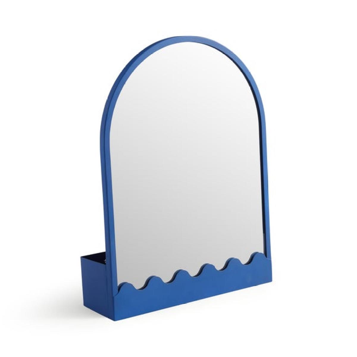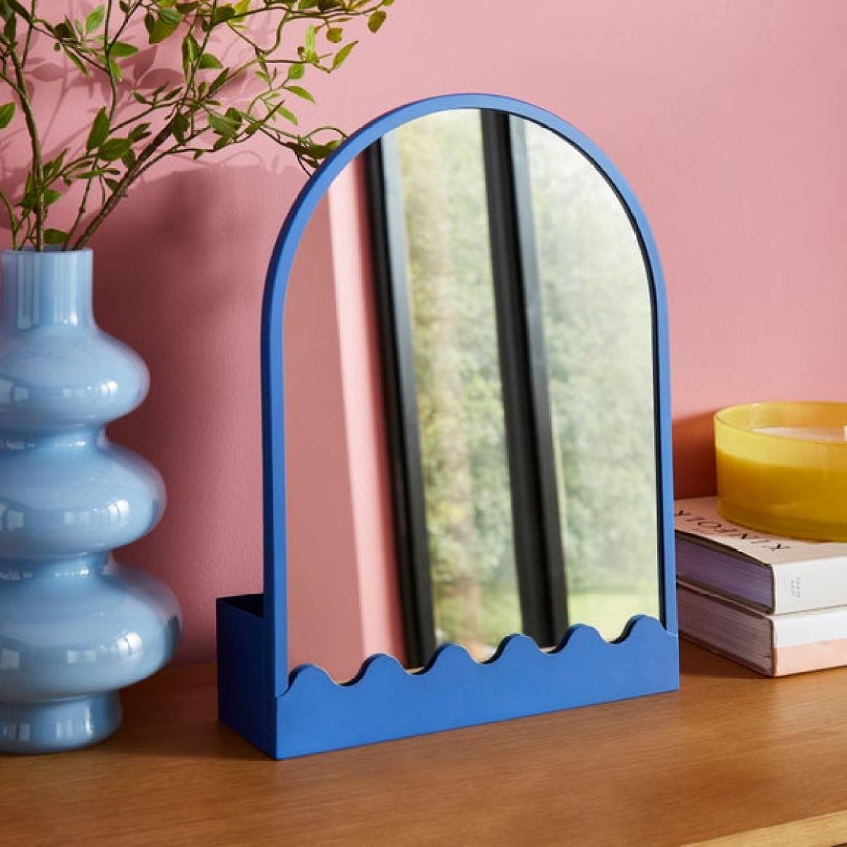 I love this dressing table mirror for its playful shape and versatile design, which works well in both modern and eclectic interiors. Its bold blue colour adds a pop of personality to your dressing area or bedroom, making it both functional and stylish. Practical styling tips include placing it on a bedside table or vanity to maximise space, and pairing it with matching or contrasting accessories for a cohesive look. Its simple yet charming design makes it a great statement piece that can easily be incorporated into various colour schemes and decor styles.