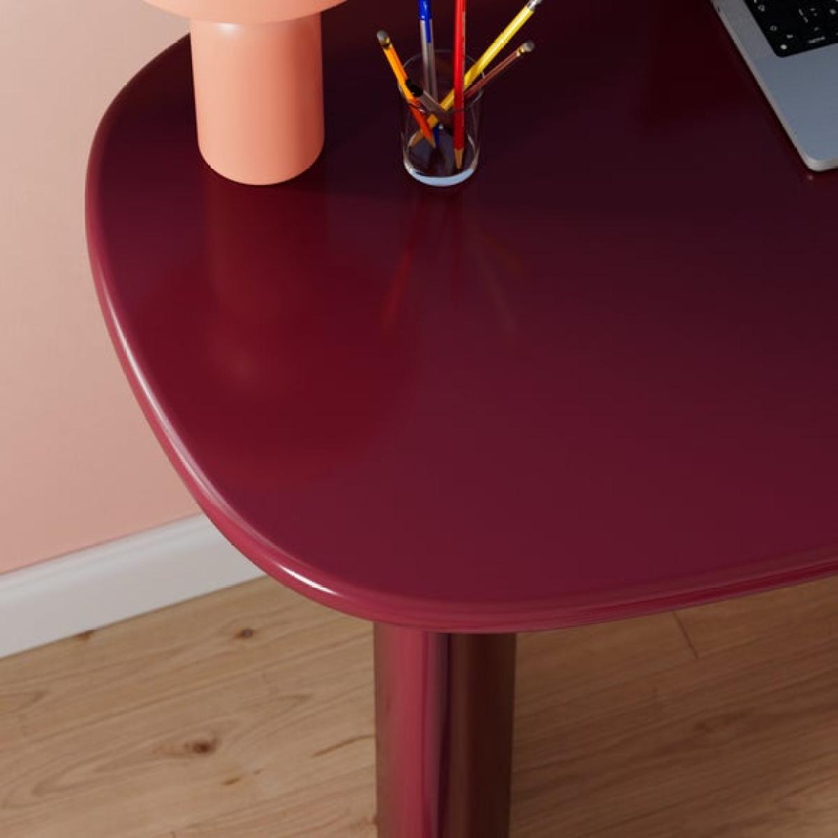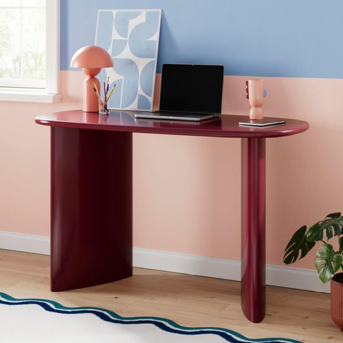 * Modern wooden desk * Rounded sides * Chunky legs * Gloss finish Bring modern sophistication to your workspace with the Elements Eliis desk. Designed with rounded sides and chunky legs, it combines bold styling with everyday functionality. The high-gloss finish adds a sleek, polished look, while the spacious surface provides plenty of room for working, studying or creative projects. A striking piece from the Elements collection, it’s perfect for creating a stylish and productive environment.