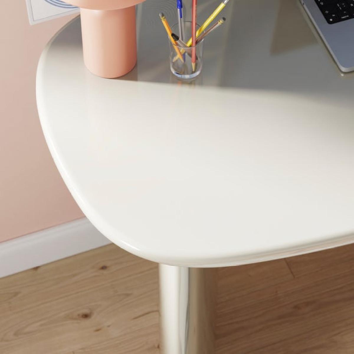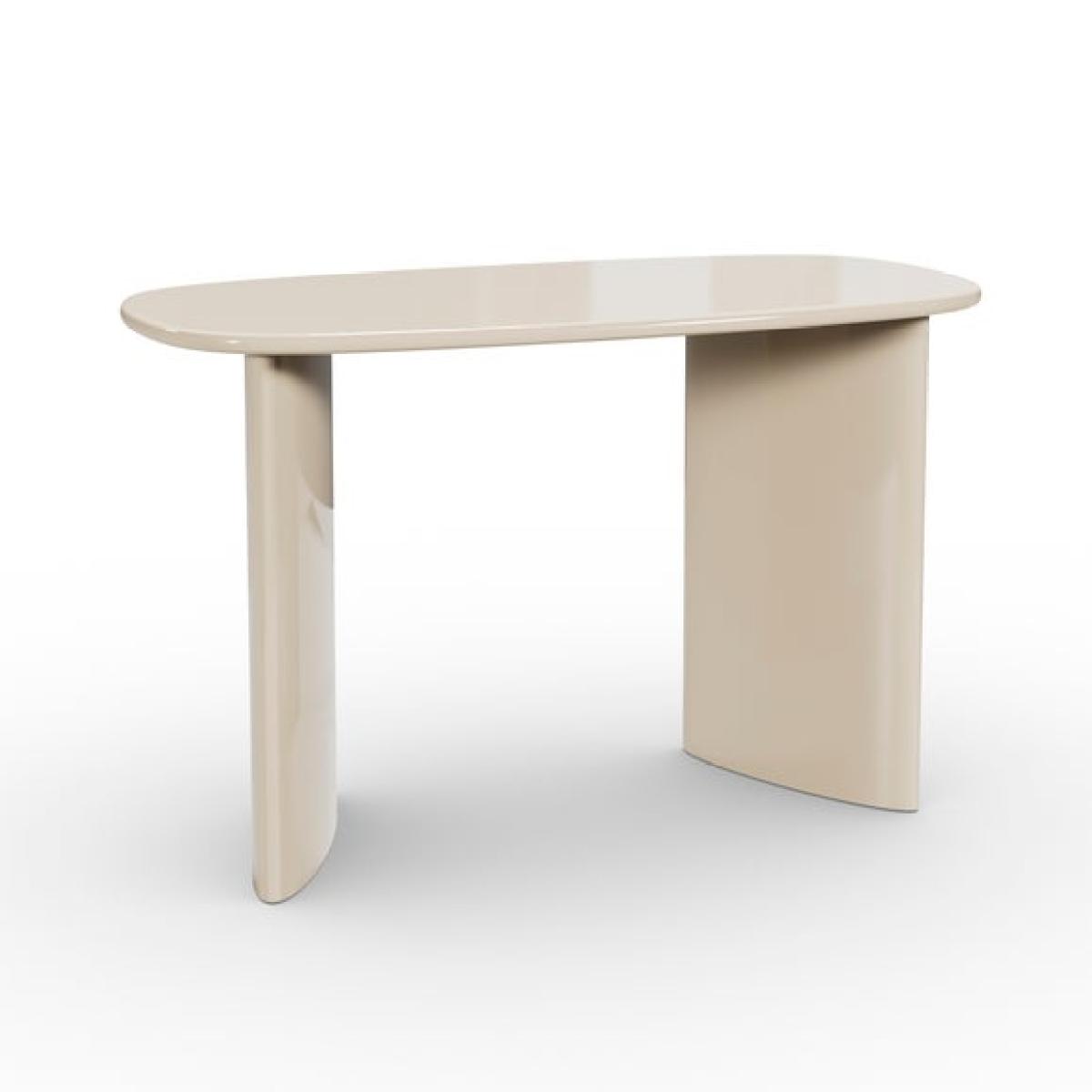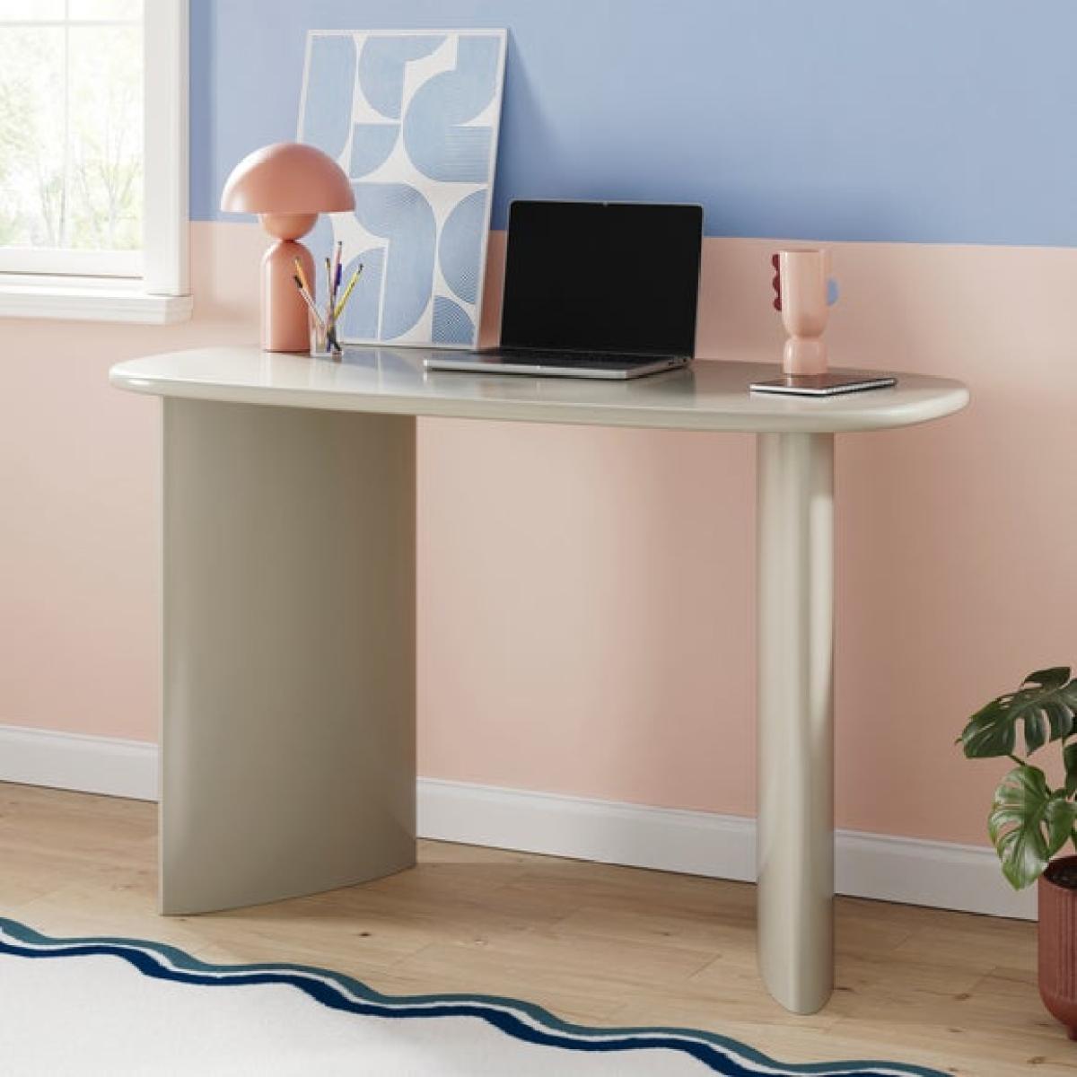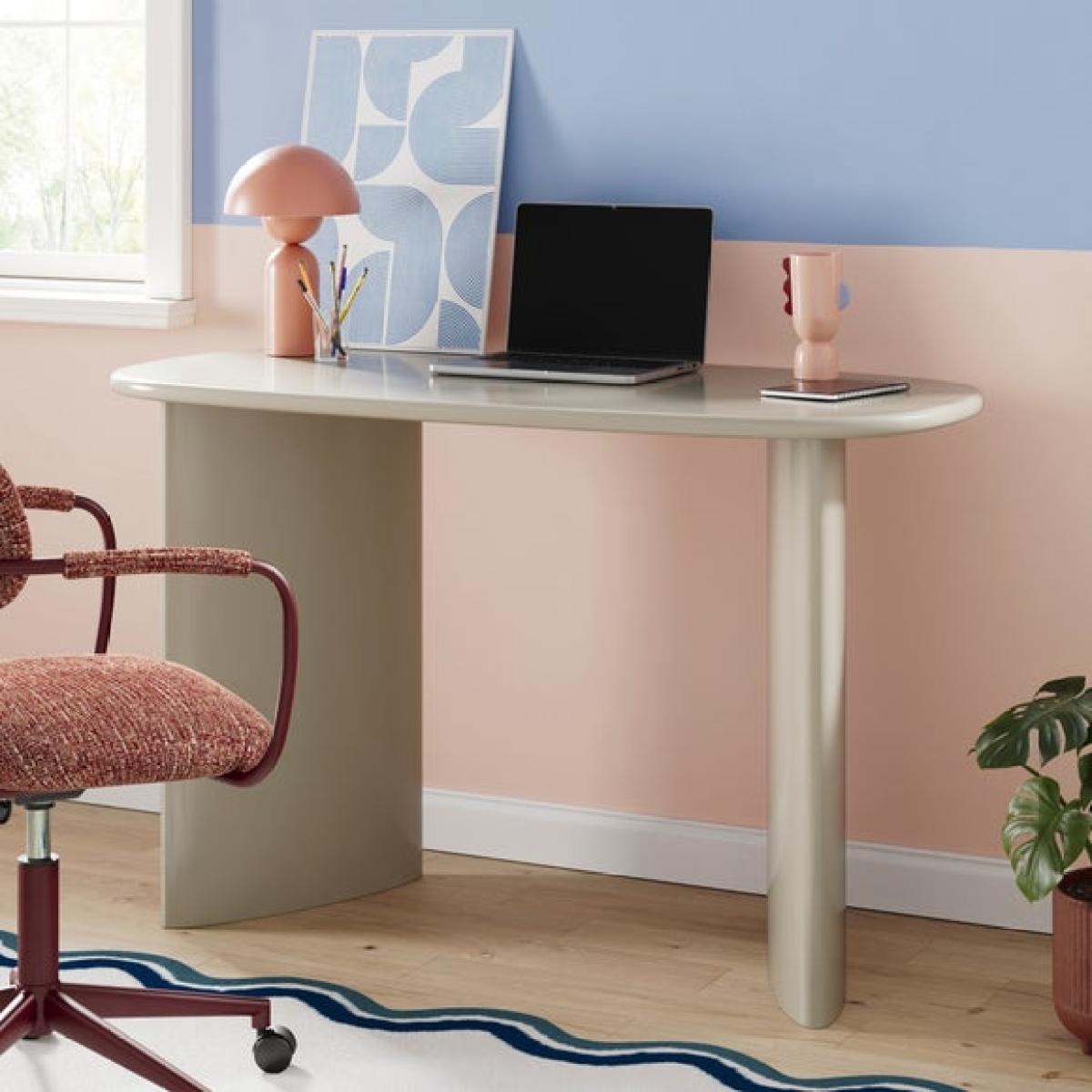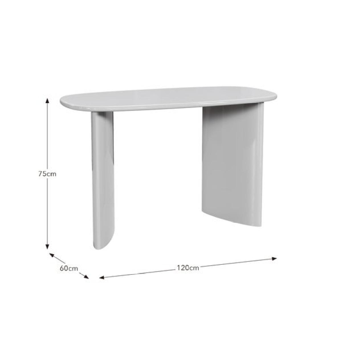 * Modern wooden desk * Rounded sides * Chunky legs * Gloss finish Bring modern sophistication to your workspace with the Elements Eliis desk. Designed with rounded sides and chunky legs, it combines bold styling with everyday functionality. The high-gloss finish adds a sleek, polished look, while the spacious surface provides plenty of room for working, studying or creative projects. A striking piece from the Elements collection, it’s perfect for creating a stylish and productive environment.
