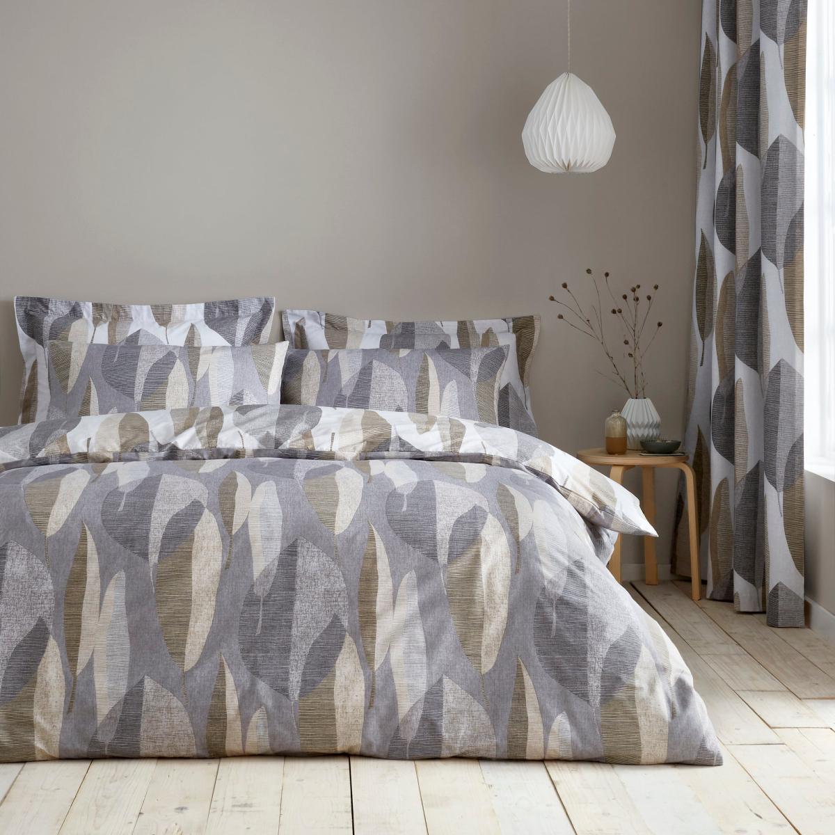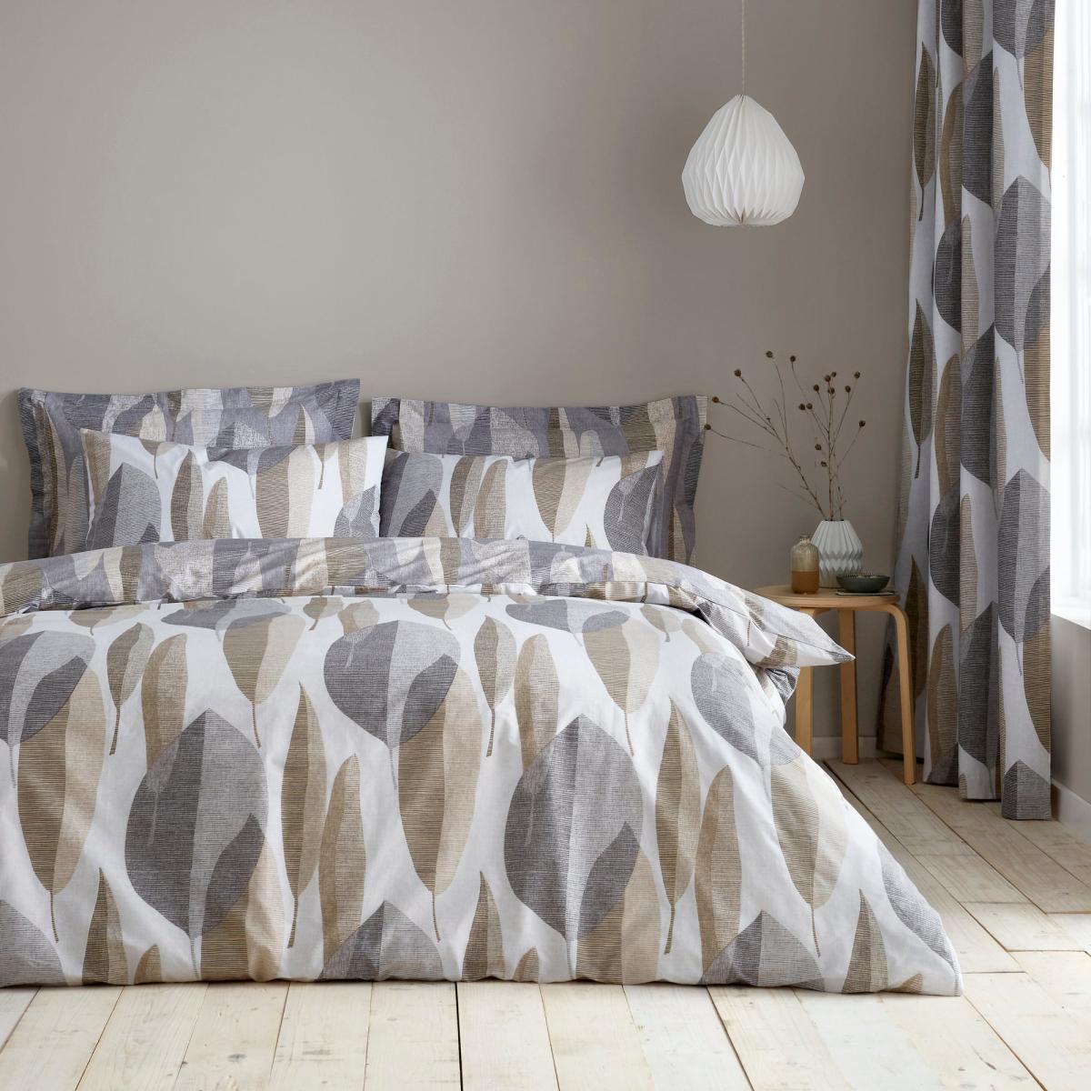 Our Elements Enya duvet cover and pillowcase set offers a calming natural leaf design over a crisp white colourway with alternate darker patterned reverse. Crafted from quality cotton fabric, Enya offers a soft handle with breathable properties for an effortless night's sleep. Coordinate with our Elements Enya curtains to complete the look.