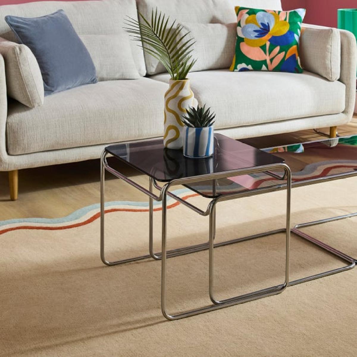 I love the Ferguson nest of tables for its versatile, layered look and space-saving design. They work really well in both modern and eclectic interiors, adding a touch of contemporary style without overwhelming the space. Practical styling tips include grouping them together for a cohesive look, or separating them to serve as individual occasional tables. The different heights make them perfect for layering with lamps, books, or decorative accessories, allowing you to personalise the space easily. They’re ideal for smaller living rooms where you want flexibility, or as an entryway table set to add extra surface area without cluttering.