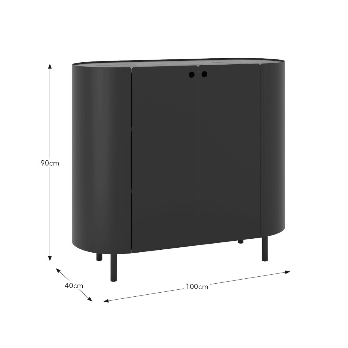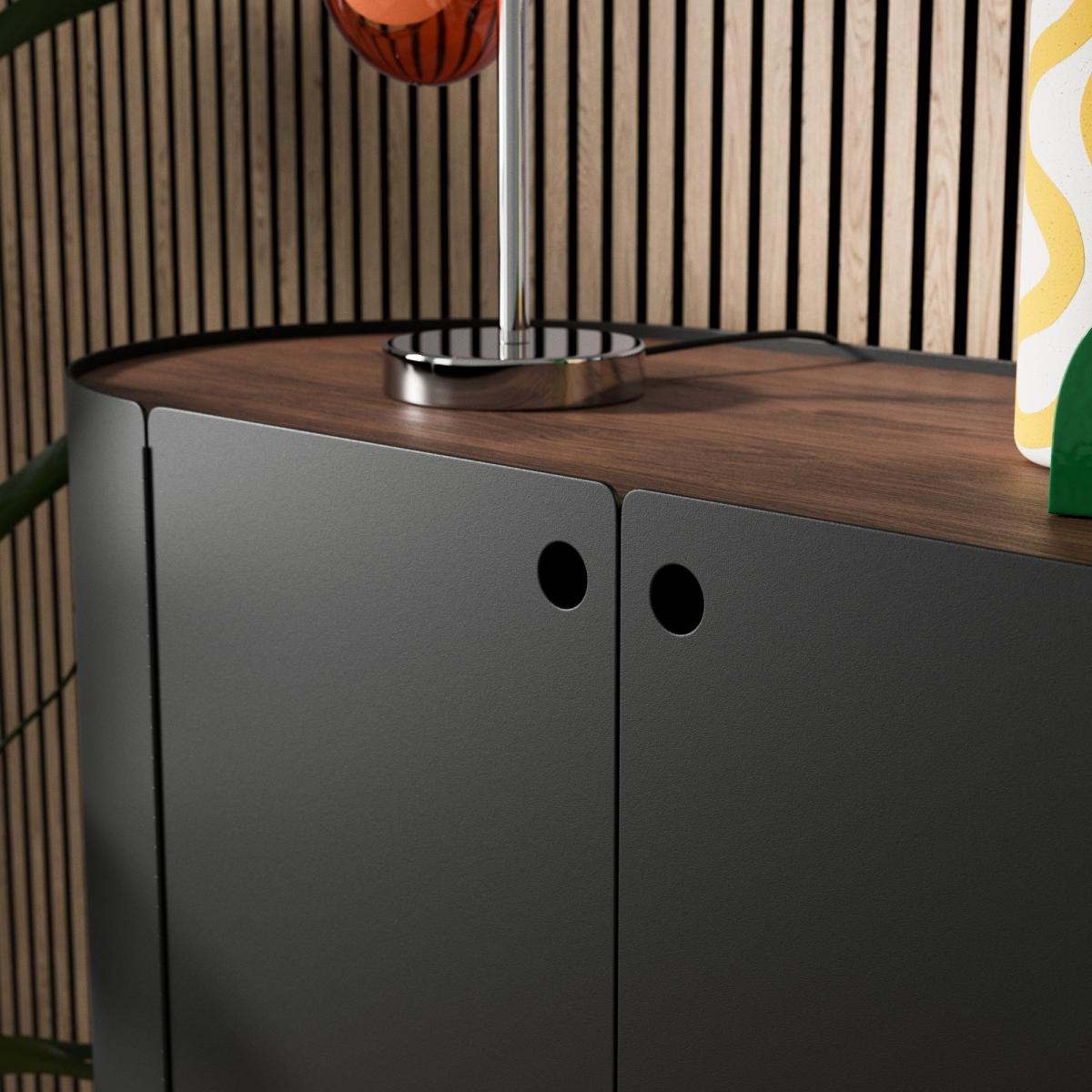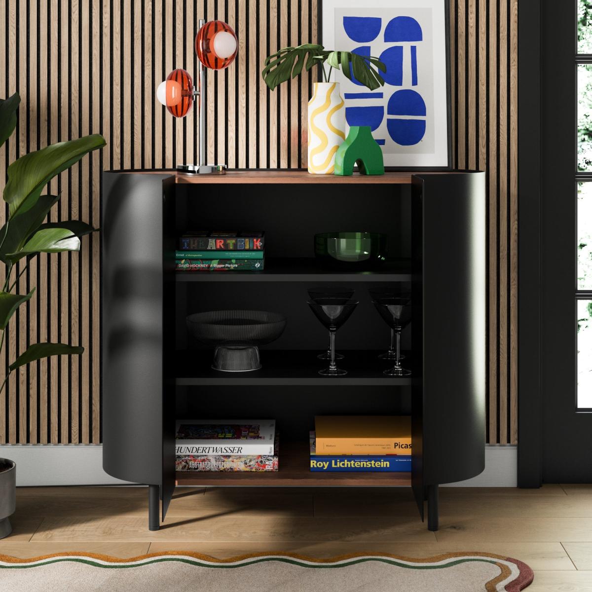 The Elements Griffin small sideboard is a sleek, contemporary piece that works well in modern living or dining spaces. Its compact size and clean black finish make it versatile enough to be used in smaller apartments or as an accent piece in larger rooms. I love styling it with minimal accessories-think a statement vase, a small sculpture, or a couple of colourful books to keep the look fresh and uncluttered. Its rounded edges and simple silhouette make it suitable for both Scandinavian-inspired interiors or more industrial settings. Practical tip: utilise the inside storage for organising tableware or magazines, keeping your space tidy while adding a touch of understated elegance.