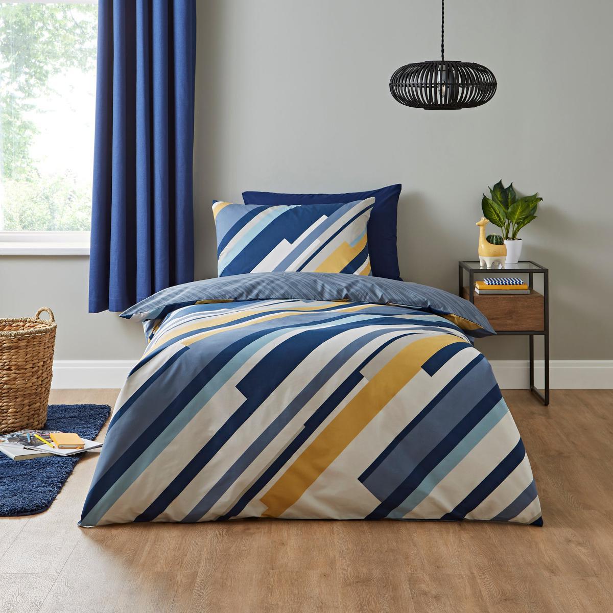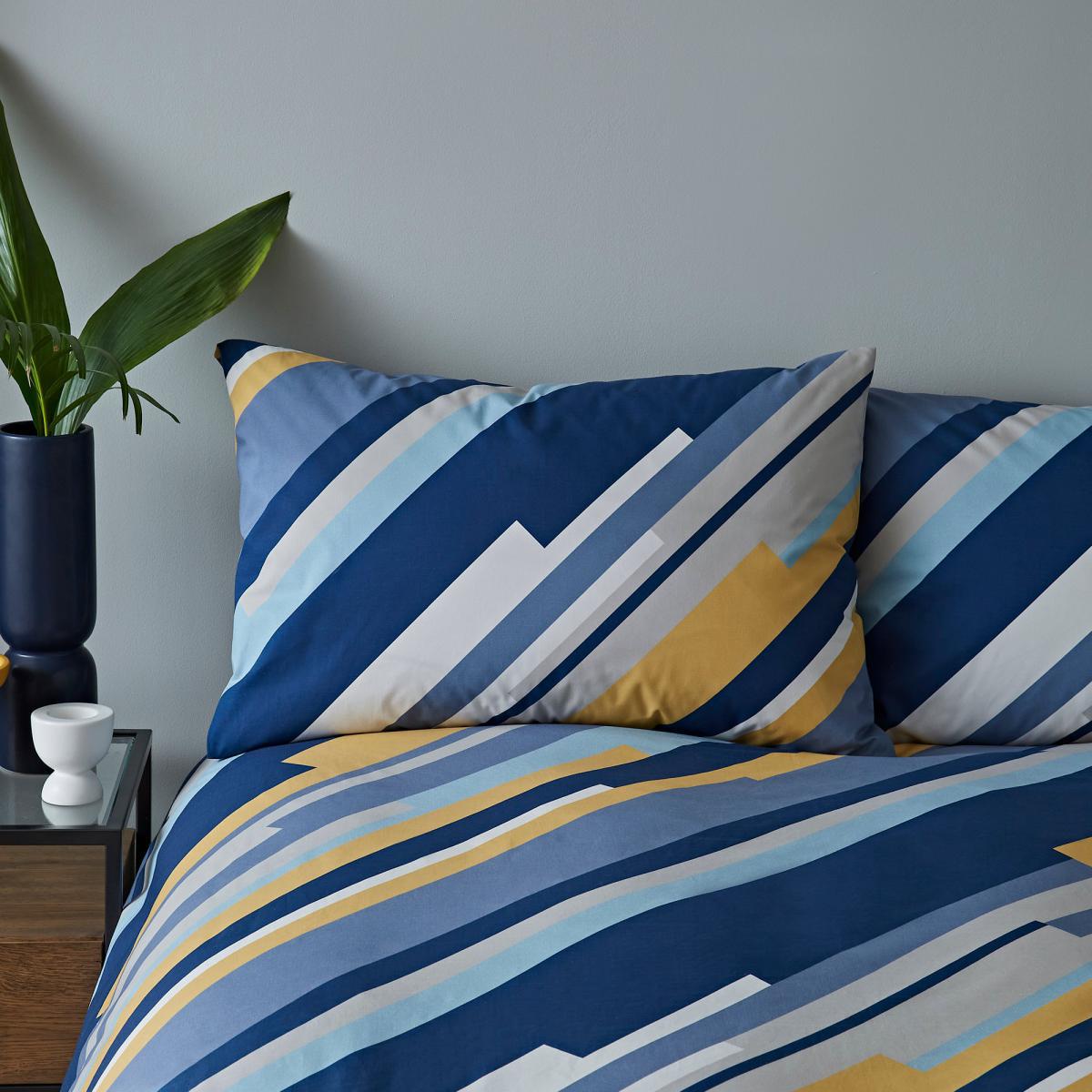 Boasting a stunning modern geometric design, this Hannes reversible bedding set is ideal for adding a contemporary feel to your bedroom. With striking blue and ochre colourways this bedding set would look stunning in any bedroom. Beautifully crafted from 100% cotton is soft, durable and machine washable. This collection is verified by OEKO-TEX® and independently tested for harmful substances as well as manufactured using sustainable processes under socially responsible working conditions. MADE IN GREEN by OEKO-TEX® is a unique product label to trace the countries and production facilities - search the product label for more information.