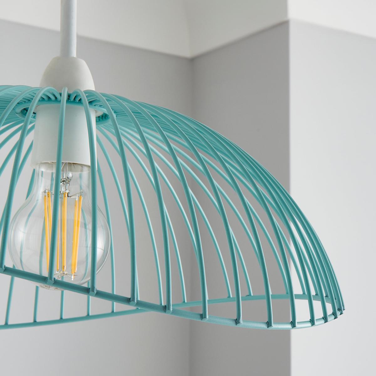 I love how this pendant adds a sleek, contemporary touch without overwhelming the space. The bright blue cage design adds a pop of colour and visual interest, making it ideal for modern, coastal, or eclectic interiors. It works particularly well over kitchen islands, dining tables, or within open-plan living spaces where you want a statement piece with practical impact. Styling tips include pairing it with minimalist or neutral-toned furnishings to let the colour stand out, or combining it with other coastal-inspired accessories for a fresh, nautical vibe. Its open cage design also ensures ample light dispersal, making it both functional and stylish.