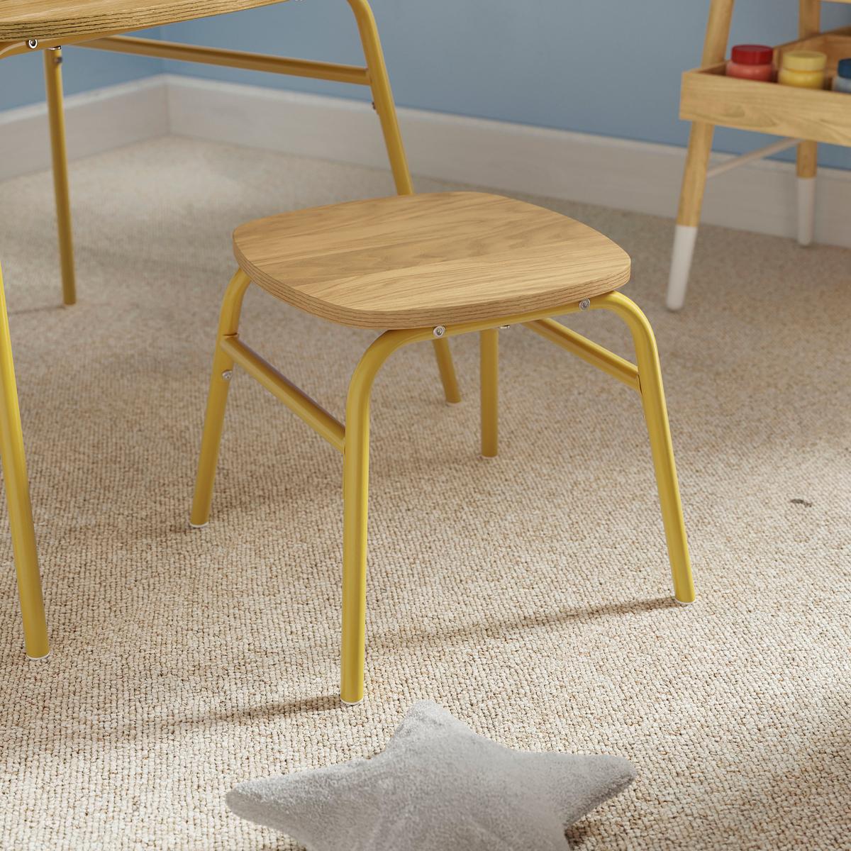 I love how this little set combines functionality with a cheerful touch of colour, making it a great addition to a child’s play corner or informal family space. The yellow adds a lively accent without overwhelming, and the natural wood top keeps it versatile enough to fit into both modern and more traditional interiors. It works particularly well in light-filled, contemporary nurseries or family living areas where it can serve as a dedicated drawing or crafting spot. For styling, consider pairing it with soft, neutral textiles and simple storage solutions to keep the area tidy, and perhaps add a few colourful accessories or cushions to make the space inviting and playful for little ones.