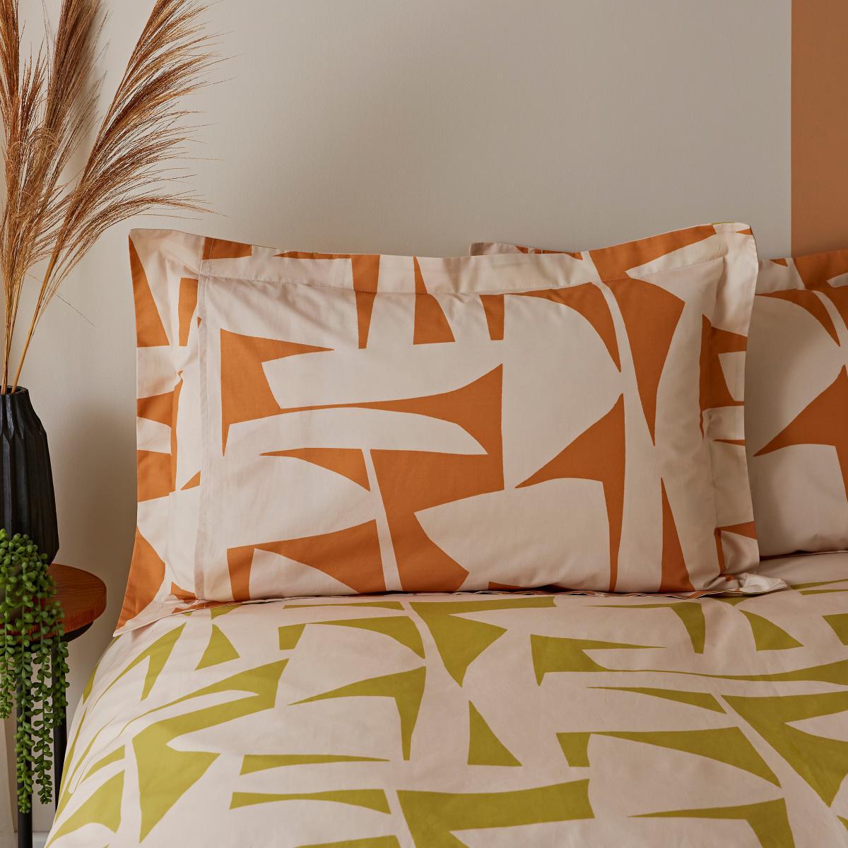 Printed with a chartreuse graphic abstract design, the Elements Klipp Oxford Pillowcase is crafted from a soft 100% cotton fabric. For a quick style swap, flip the pillowcase over to reveal an alternative orange colourway printed on the reverse. The pillowcase is then complete with a smart oxford edge styling. A matching bedding set is available. This collection is verified by OEKO-TEX® and independently tested for harmful substances as well as manufactured using sustainable processes under socially responsible working conditions. MADE IN GREEN by OEKO-TEX® is a unique product label to trace the countries and production facilities - search the product label for more information.
