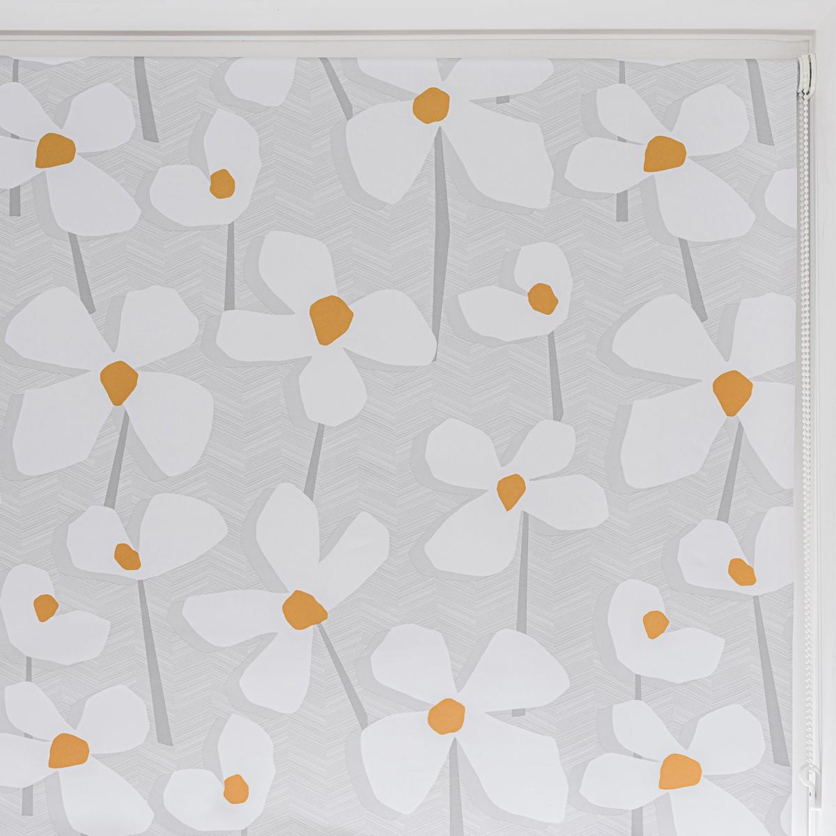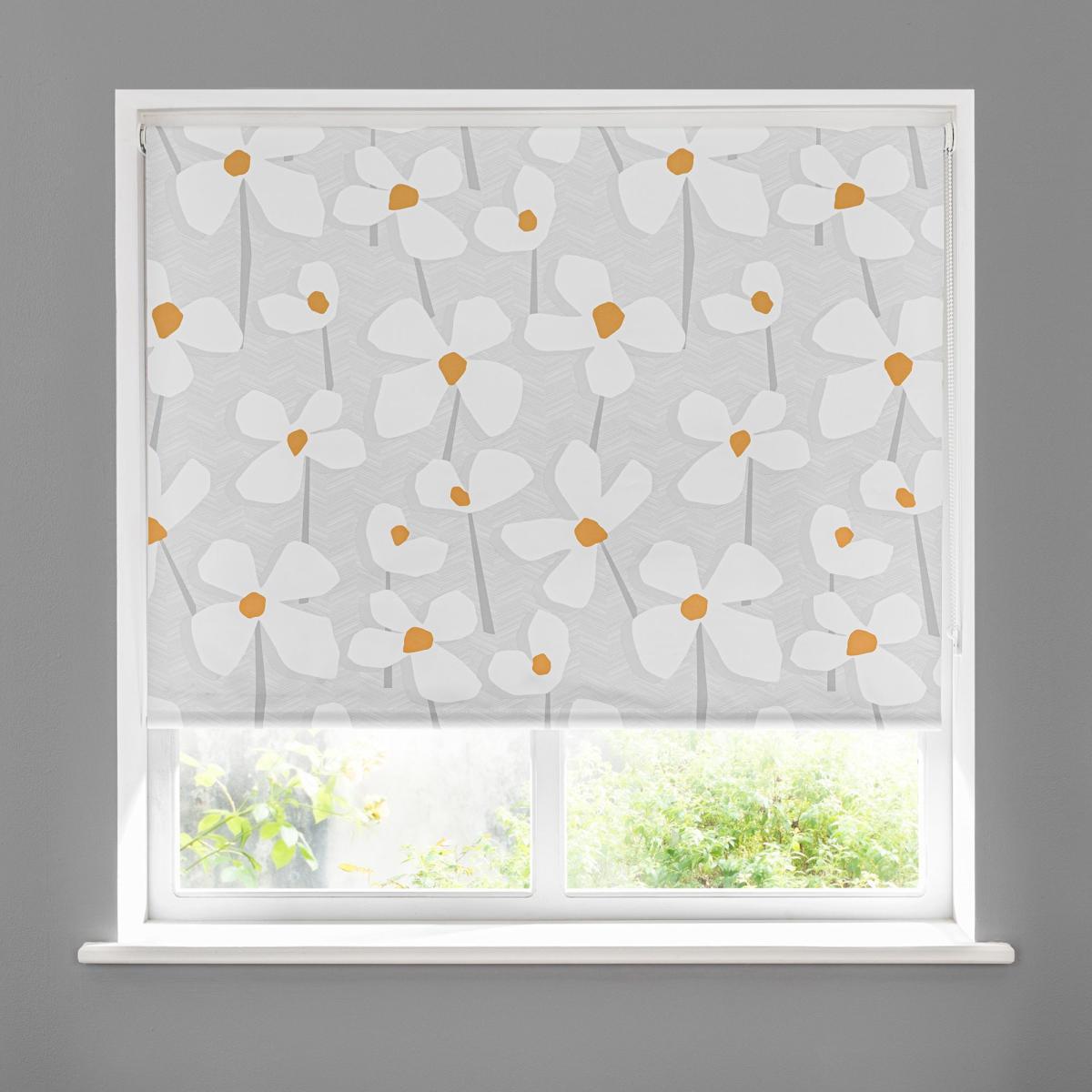 Elements Lena Floral Ochre Blackout Roller Blind Grey, White and Yellow