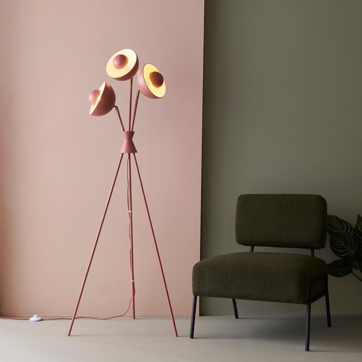 The Elements Levi Tripod 3 Light Metal Floor Lamp in pink is a great statement piece that adds a playful yet modern touch to a variety of interiors. I love its bold colour and sleek tripod design, which works particularly well in contemporary, eclectic, or even pared-back minimalist spaces where it can serve as a decorative focal point. Practical styling tips include placing it next to a neutral sofa or armchair to introduce colour without overwhelming the room, or using it to highlight a cosy reading corner. Its versatile design means it can elevate both living areas and creative spaces, making it a stylish and functional addition to your lighting set-up.