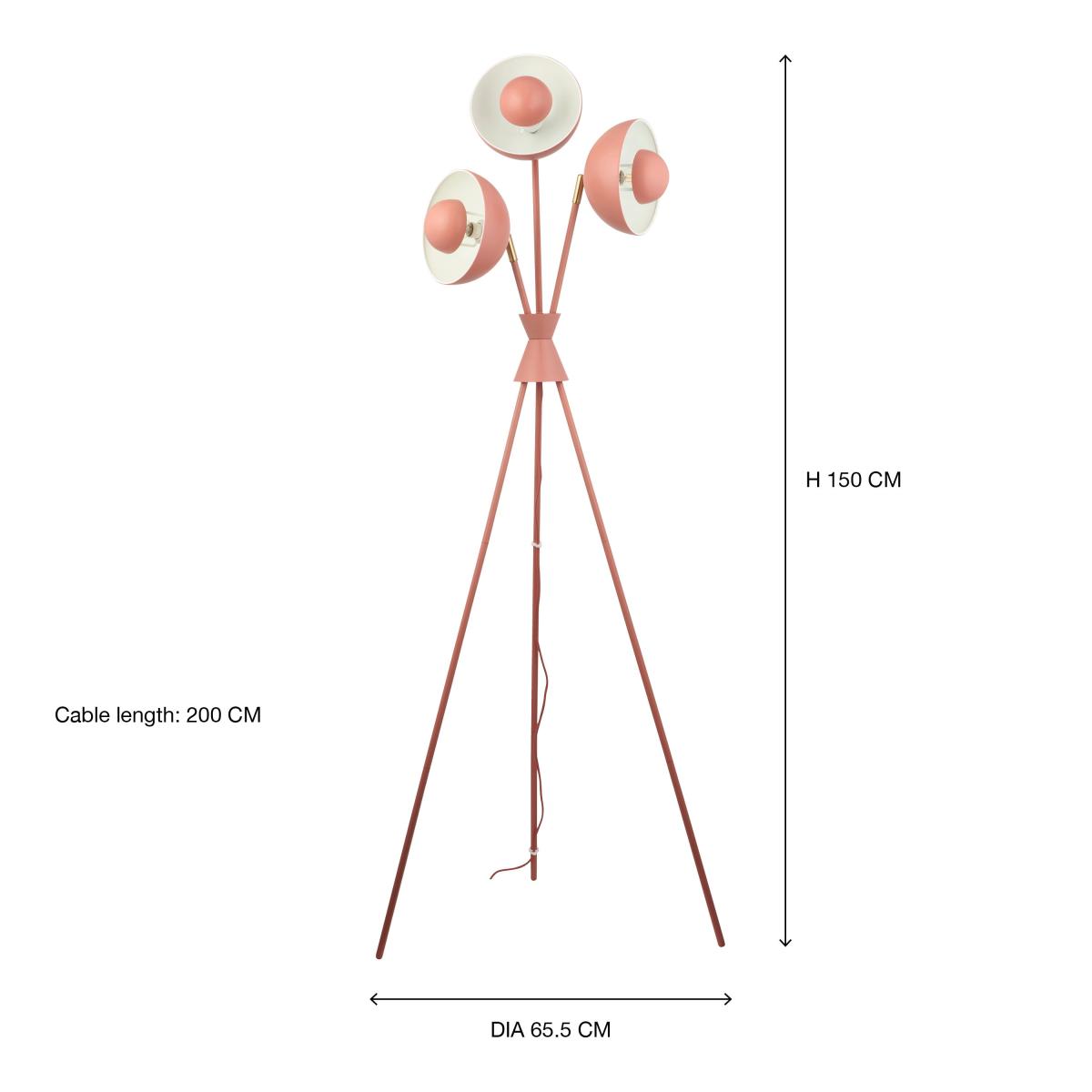 Elements Levi Tripod 3 Light Metal Floor Lamp Pink