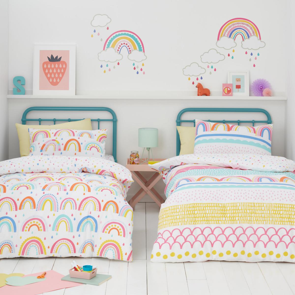 Bosting a colourful, geometric pattern, this twin pack of duvet covers and pillowcases is perfect for sleepovers or for having a spare duvet cover and pillowcase available. This set is made from 100% cotton making it super soft and the duvet overs are also reversible so you have endless options of patterns. This set is machine washable and other matching bedding and curtains are available. This collection is verified by OEKO-TEX® and independently tested for harmful substances as well as manufactured using sustainable processes under socially responsible working conditions. MADE IN GREEN by OEKO-TEX® is a unique product label to trace the countries and production facilities - search the product label for more information on. Here.