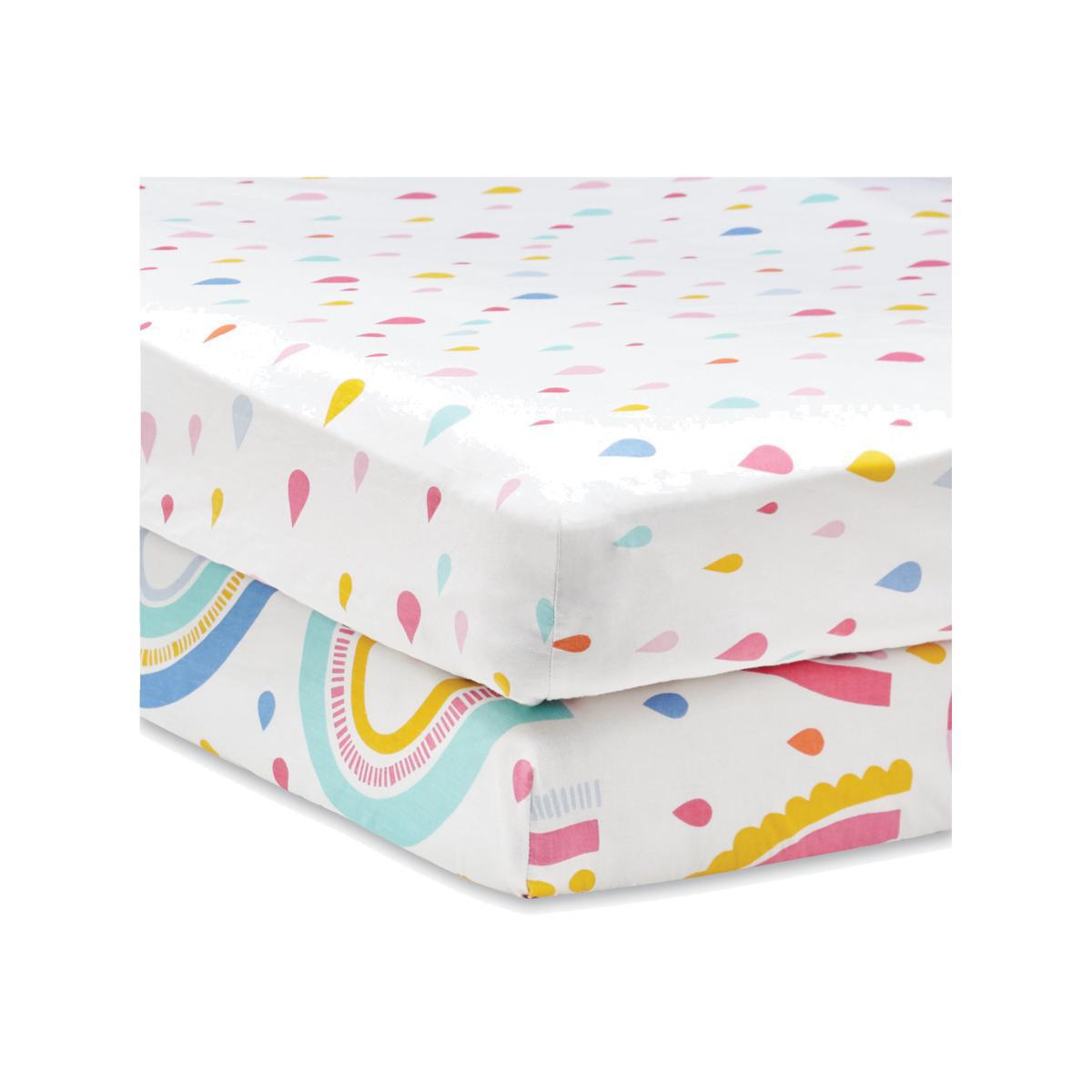 Boasting a colourful, geometric pattern, this fitted sheet twinpack is perfect for adding a fun touch to your child's bedroom. With two different designs, this pack gives you a choice of two colourful prints. These sheets are made from 100% cotton making them super soft, so your little one can have a cosy night's sleep. This sheet set is machine washable and other matching bedding and curtains are available. This collection is verified by OEKO-TEX® and independently tested for harmful substances as well as manufactured using sustainable processes under socially responsible working conditions. MADE IN GREEN by OEKO-TEX® is a unique product label to trace the countries and production facilities - search the product label for more information on. Here.