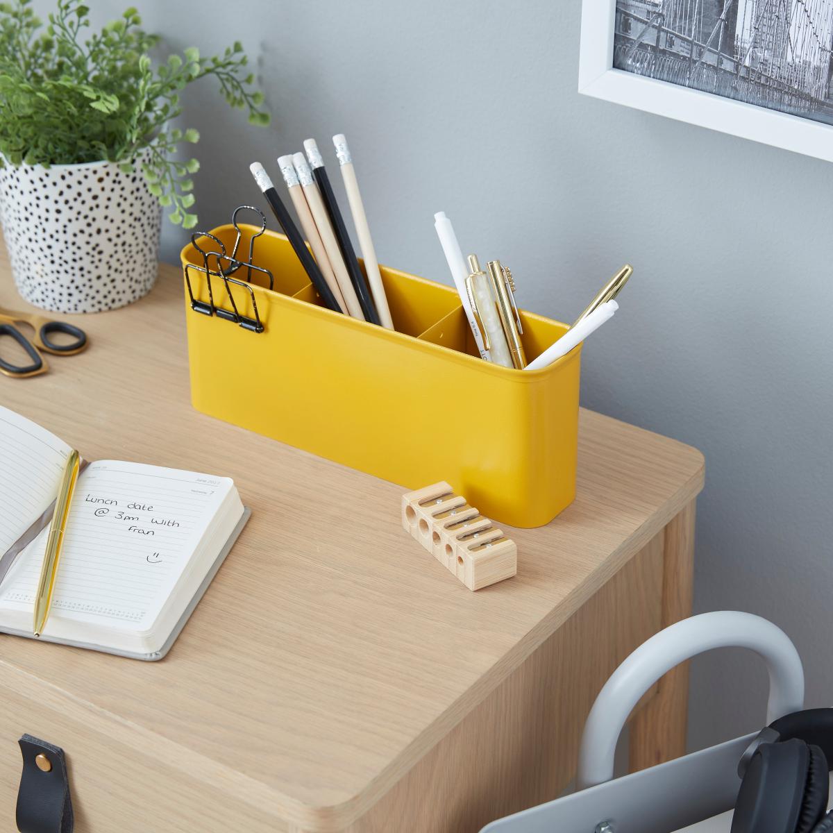 The perfect accessory for keeping your work area clean and tidy. This pen storage pot has a simple and stylish design made from a steel finish that incorporates easily into any space. A multi-functional piece, this pen storage pot can also be used as an organiser on your dressing table and more.